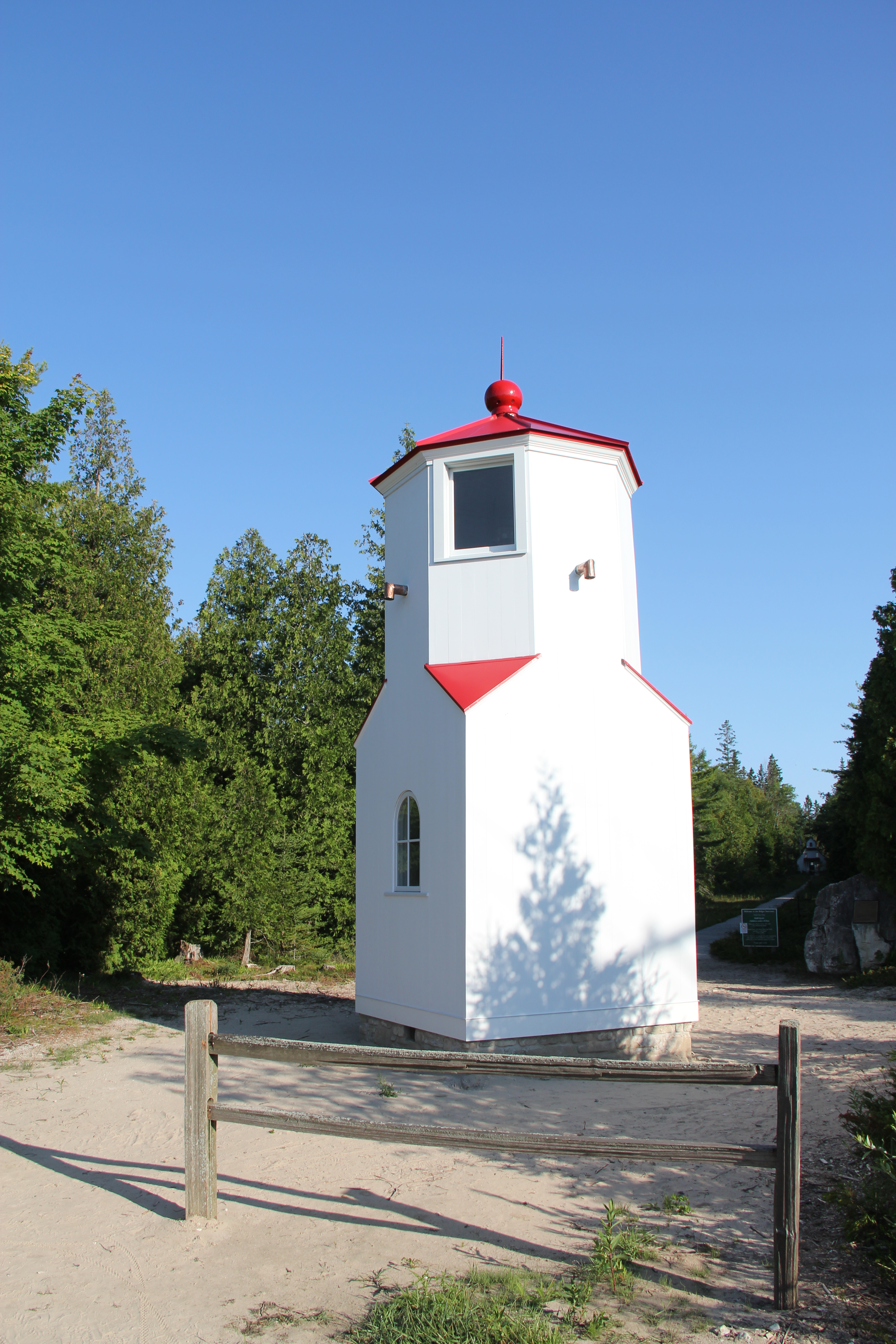 The Ridges Nature Center, 8166 Hwy 57. Established 1869, automated 1923. Between 1869 and 1969 these range lights were used by navigators to safely enter Baileys Harbor. When the unique upper and lower lights were lined up with one light over the other, the sailor knew he/she was in safe water. These lights were removed from service in 1969 and a directional light was placed atop a 31-foot skeletal tower on the shore. In 1993, the Ridges Sanctuary restored both range lights. In 2012, the Lower Range Light underwent a full restoration. In 2015, the lights were relit and are once again functioning as a navigational aid. Plans are underway to restore the Upper Range Light.