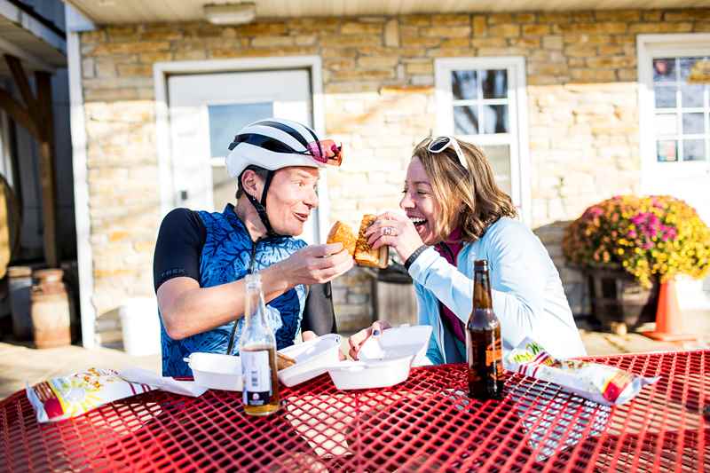 After a peaceful night’s sleep in the farmhouse, get ready to ride with hot coffee and fresh donuts at Sunrise Donut Cafe in nearby Monroe. From there, head north with friends towards Monticello for a 12-mile ride through Wisconsin’s stunning Driftless Region. Untouched by the glaciers that moved through the state thousands of years ago, these ancient hills are perfect for cyclists who love a little elevation and a lot of beauty.