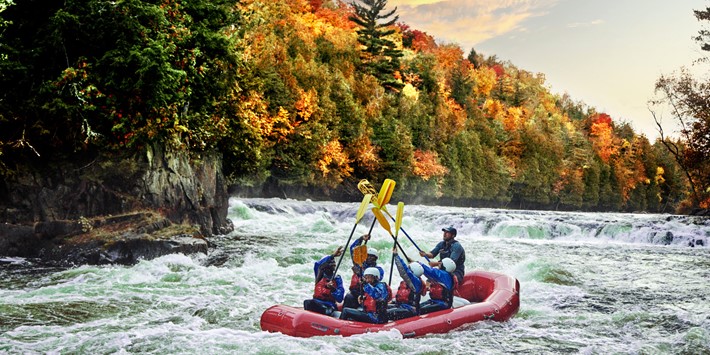 People often don’t realize it’s possible to raft in the Midwest, but this section of the Menominee River has Class III and Class IV rapids (on a scale of one to five, five is the most technically difficult). Plus, while most river rapids are at their peak in the spring, when water levels are highest, the dam on the Menominee keeps the flow consistent — and the rapids exhilarating — for the full rafting season, making it the perfect choice for our fall trip.
