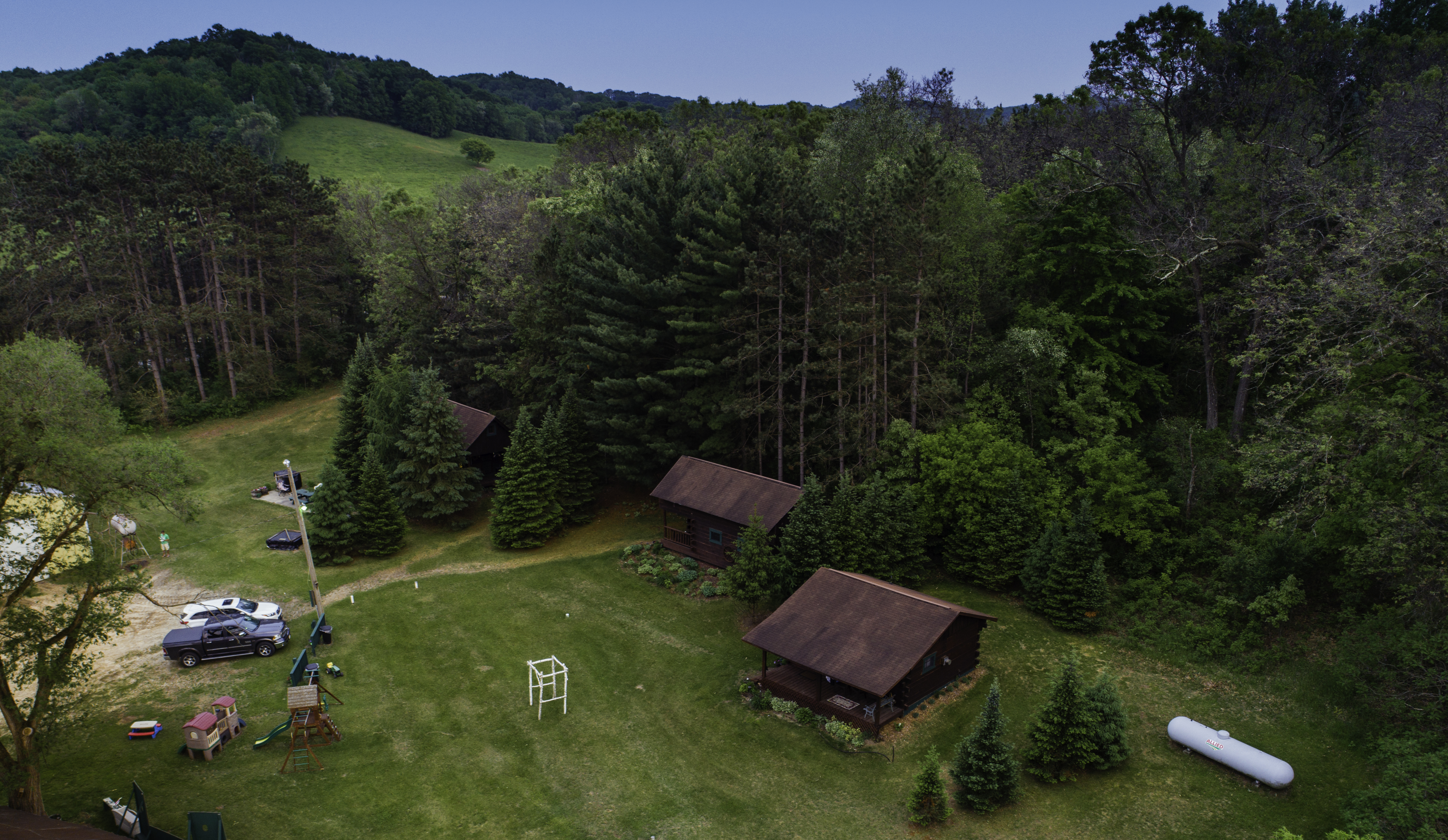 Our cabins are located on a picturesque small working dairy farm 5 miles south of Sparta, Wisconsin. They are rustic yet comfortable. Amenities include gas fireplaces, air conditioning, refrigerators, microwaves, coffee makers, TVs, DVDs, and Wi-Fi.