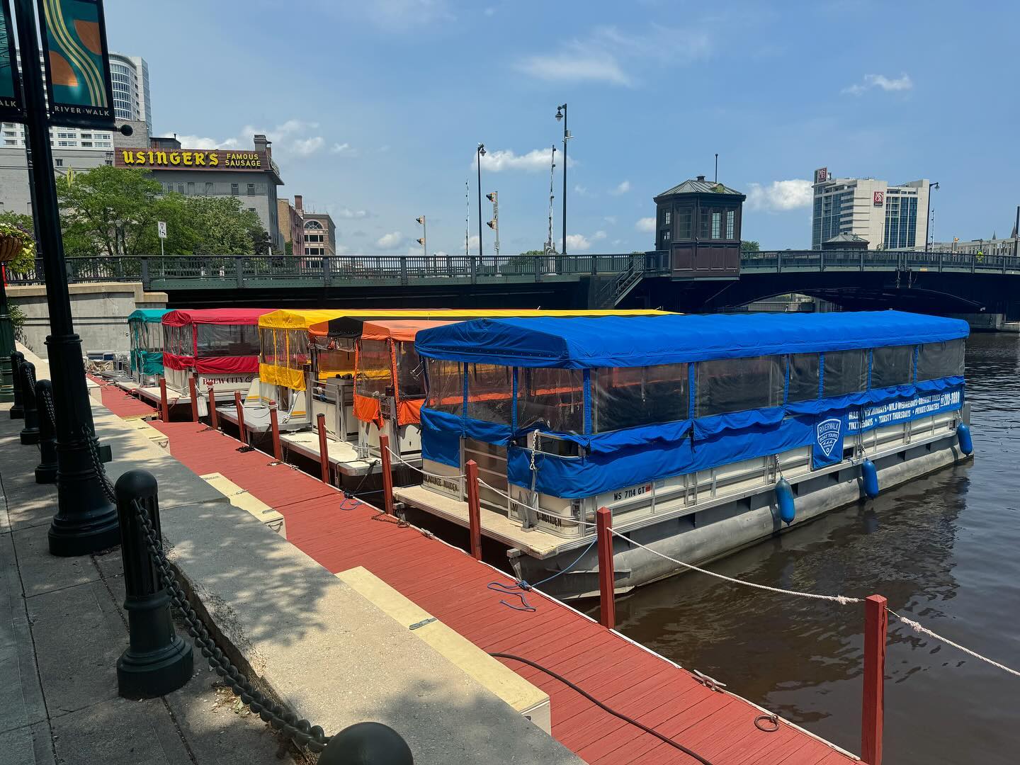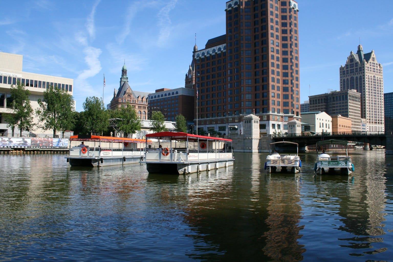 Riverwalk Boat Tours & Rentals offers captained private charters and self-captained pontoon boat rentals along Milwaukee's three rivers and lakefront. Pontoon boat rentals are great for sightseeing, while private charter rentals provide a memorable backdrop for your next family gathering, corporate outing, birthday party, or other large group event.