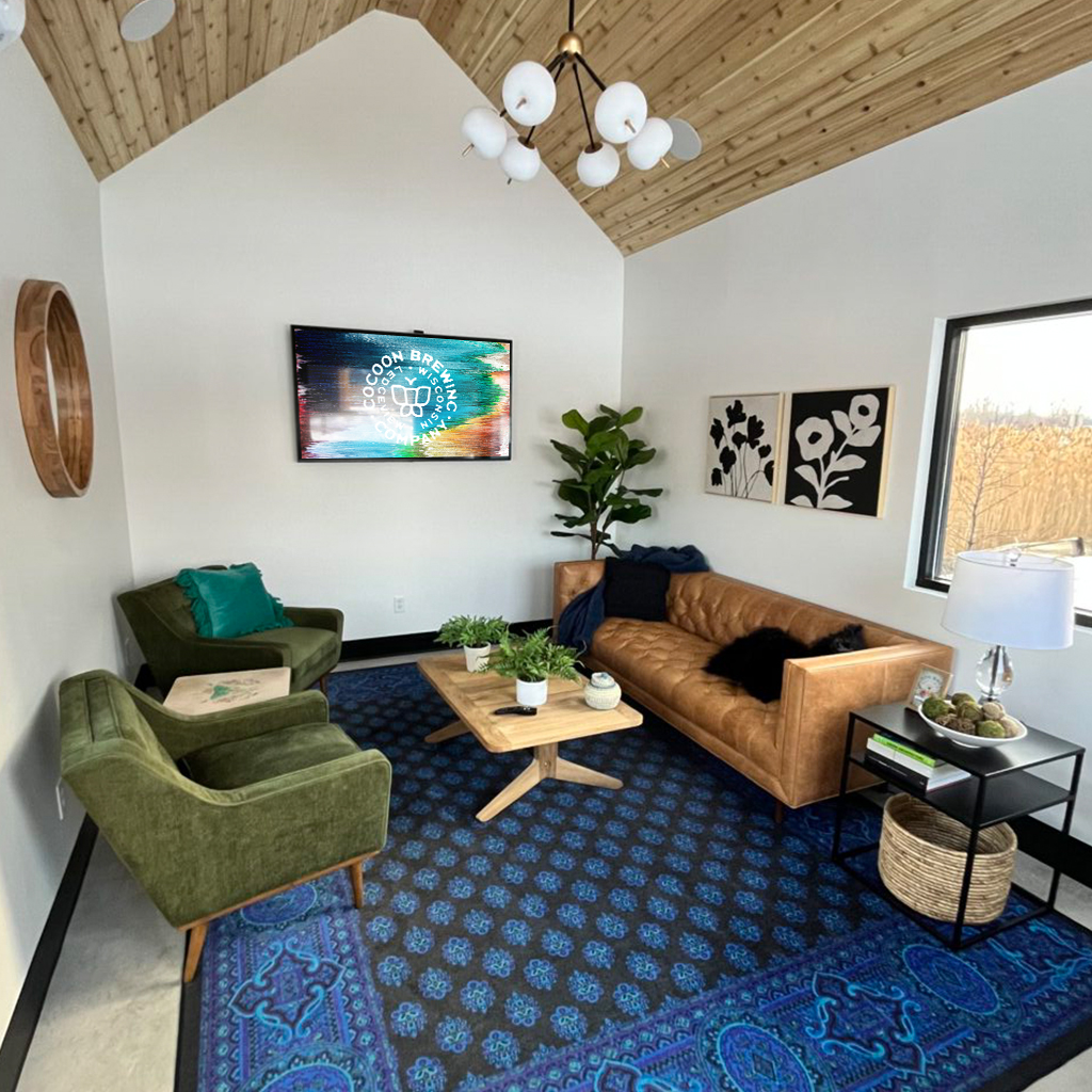 The main taproom provides year round comfort with direct access to an expansive lawn and distinctive “cocoon” structures for small groups seeking a singular experience.