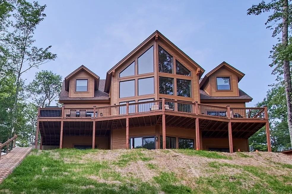 The cabin is an efficiently designed three-level luxury home with a view of the lake that will take your breath away. It boasts six bedrooms (5 with lake views!) and a loft sleeping area, 3 ½ baths, a full-length front porch and lakeside deck with gas grill and plenty of seating to watch those beautiful morning sunrises.The private dock gives you access to 1880 acres of the Big St Germain Lake chain for great fishing, boating and swimming.
