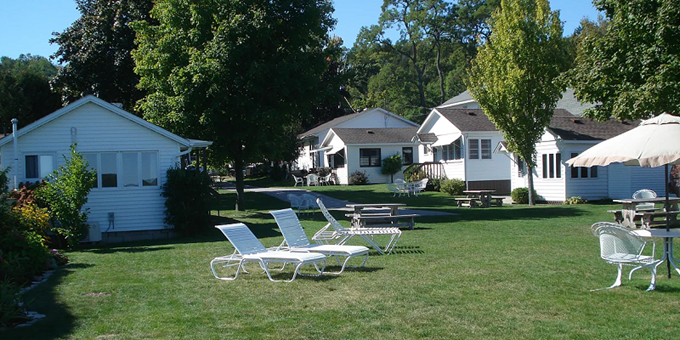 Located on the shores of Green Bay in the heart of Fish Creek. Charming cottages meticulously kept, nestled amidst unique shops, cafes, restaurants. Footsteps from the marina & just two blocks from Peninsula State Park & the public beach. Featuring full kitchens, microwave, and living room with cable T.V., air conditioning. Enjoy our amenities such as chaise lounges, umbrella and picnic tables, lawn furniture, private boat dock, Wi-Fi, Weber grills.