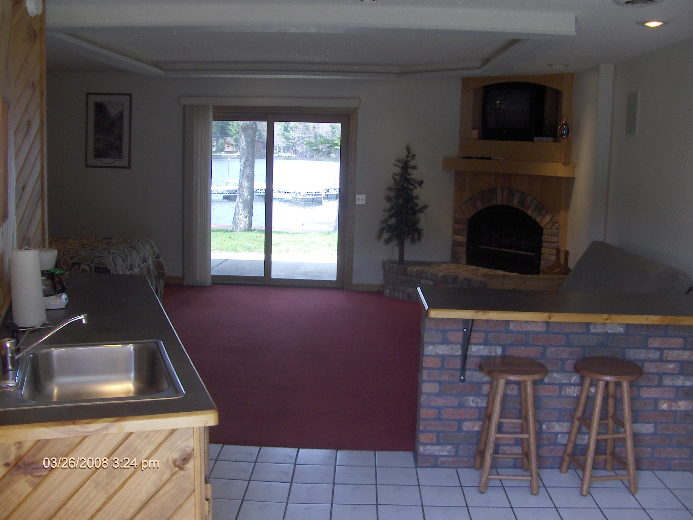 Home for fans, food, & fun at Gilligans Get-a-Ways, Gilligans Bar, Tiki Bar & Restaurant and Skippers Bait & Liquor. Stay over for a night or a week in one of our 2 spectacular suites or our modern 3 bedroom cottage. The Hot Tub Suites features a large private jacuzzi with waterfall, walk-in 12 head shower & king size bed. The Fireplace Suite includes a glass fireplace, queen bed and jacuzzi tub. The cottage boasts a full kitchen, 3 bedrooms and 2 decks. All units are on the water with level access and include A/C, cable, private boat dock and more.