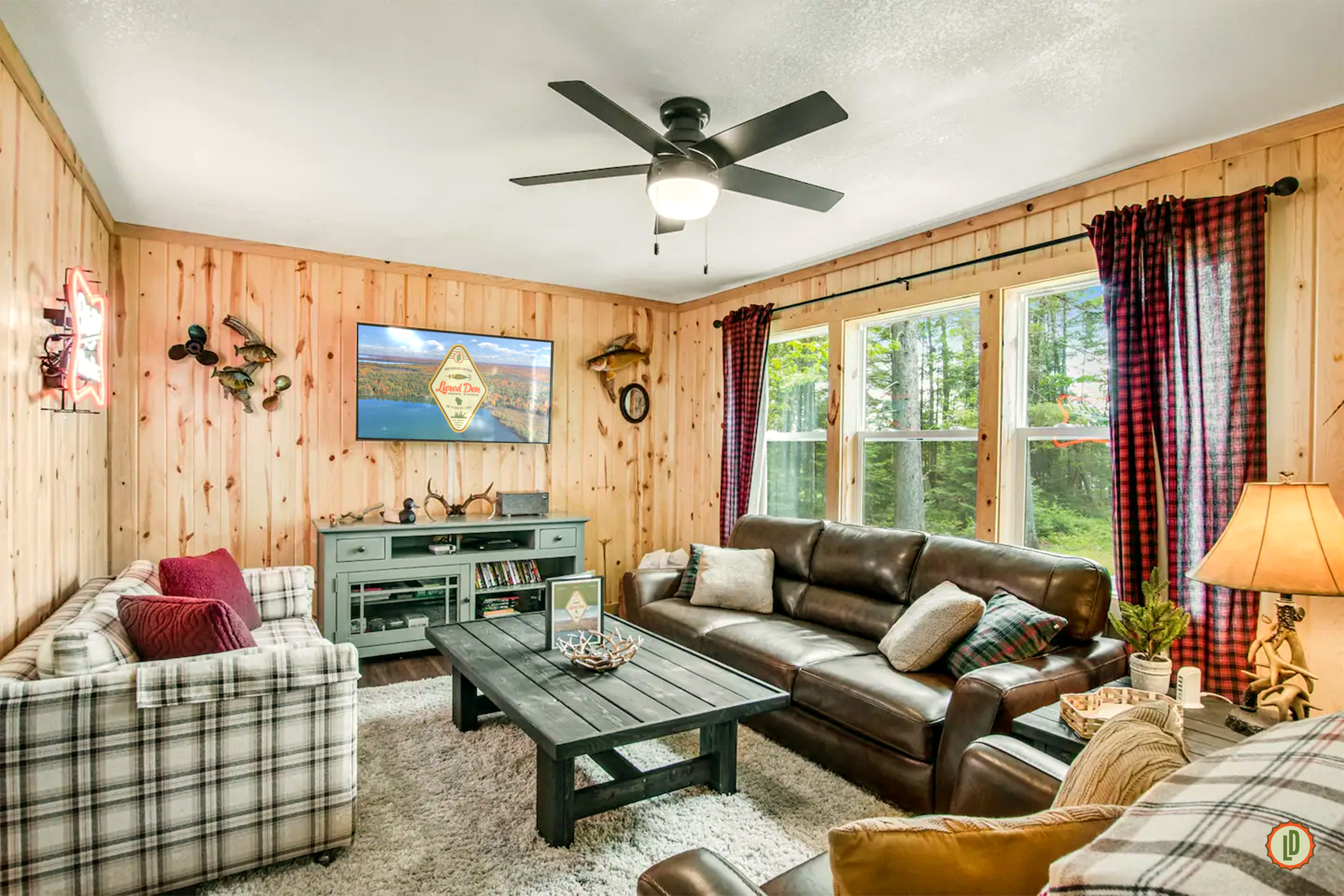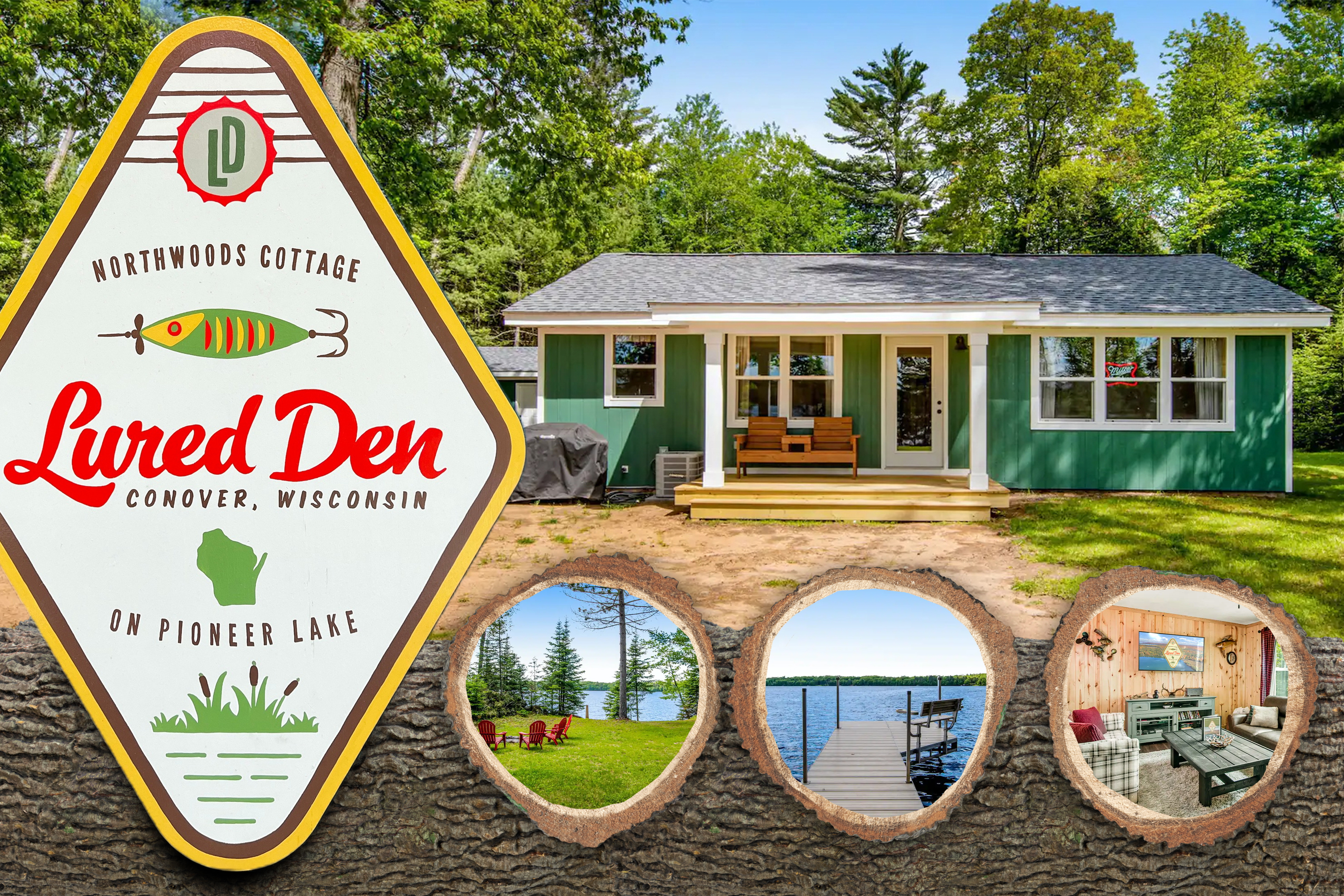 Relax and unwind at this quintessential Northwoods lake cottage outside Eagle River. Lured Den is a classic 1950s cabin that has been completely renovated with all the modern necessities while staying true to its vintage Northwoods charm. Enjoy a peaceful and private vacation nestled in the pines with over 100' of lake frontage and crystal clear water on 430-acre Pioneer Lake. Make use of our pier, fire pit, four kayaks, covered porch and more. All this is just a short drive from Eagle River.