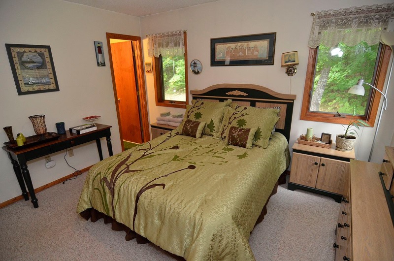 Less than a mile up the hillside from downtown Bayfield, Wisconsin, there is little to remind one of all the bustle left behind in the "Best Little Town in the Midwest." That is the nice thing about selecting Ole & Lena's Place as your "home away from home" while visiting Bayfield. The setting is hardwood forest sprinkled with stately white pine and spruce. The pace is laid-back Wisconsin North Woods and the sounds you don't hear are called silence. But any time you tire of peaceful quiet, and bears in the back yard, Bayfield is just moments away. The Woodland Suite has a private entrance & bath, queen bed, kitchenette, and sitting area. It's an intimate getaway for two. The Shipmaster room has a nautical theme with a full-sized bed and attached private bath. The Rose Room has Victorian style decorating, a full-sized bed, and shared bath with the Bear Den. The Bear Den is available in addition to the Rose Room for parties of four.