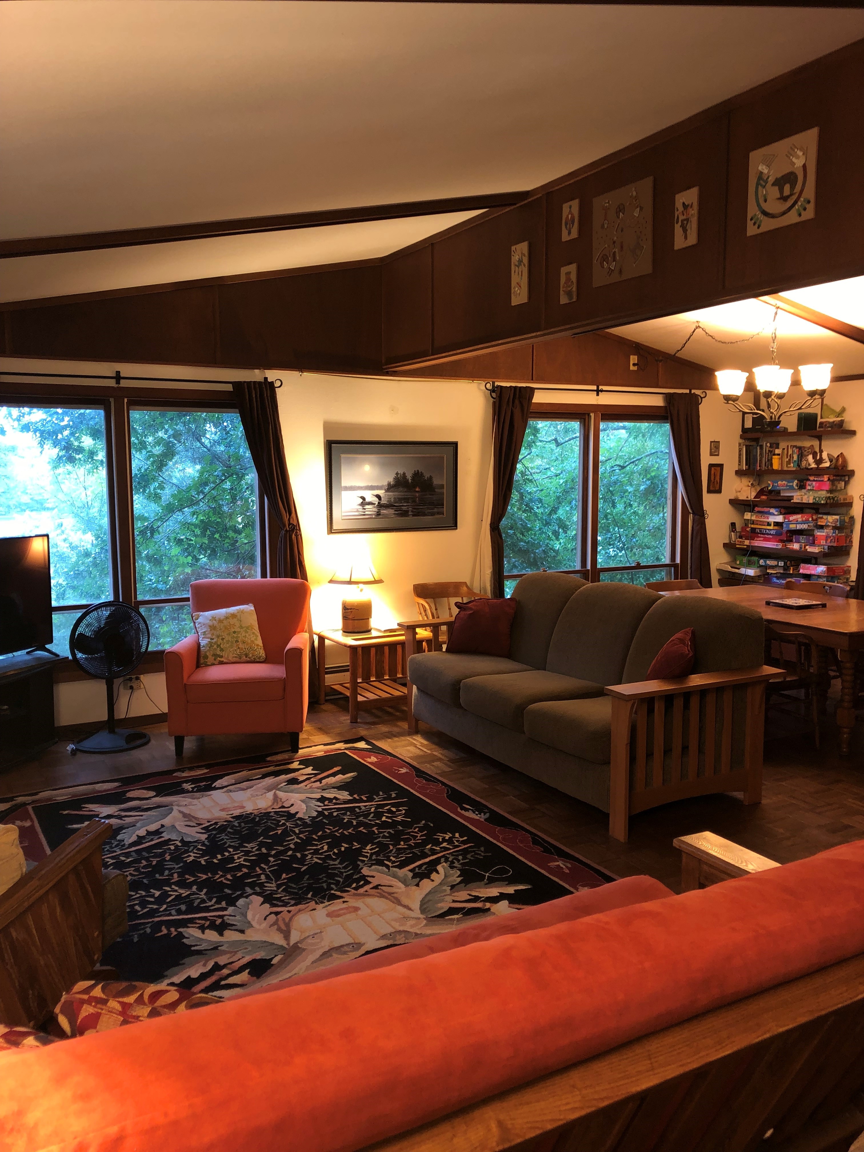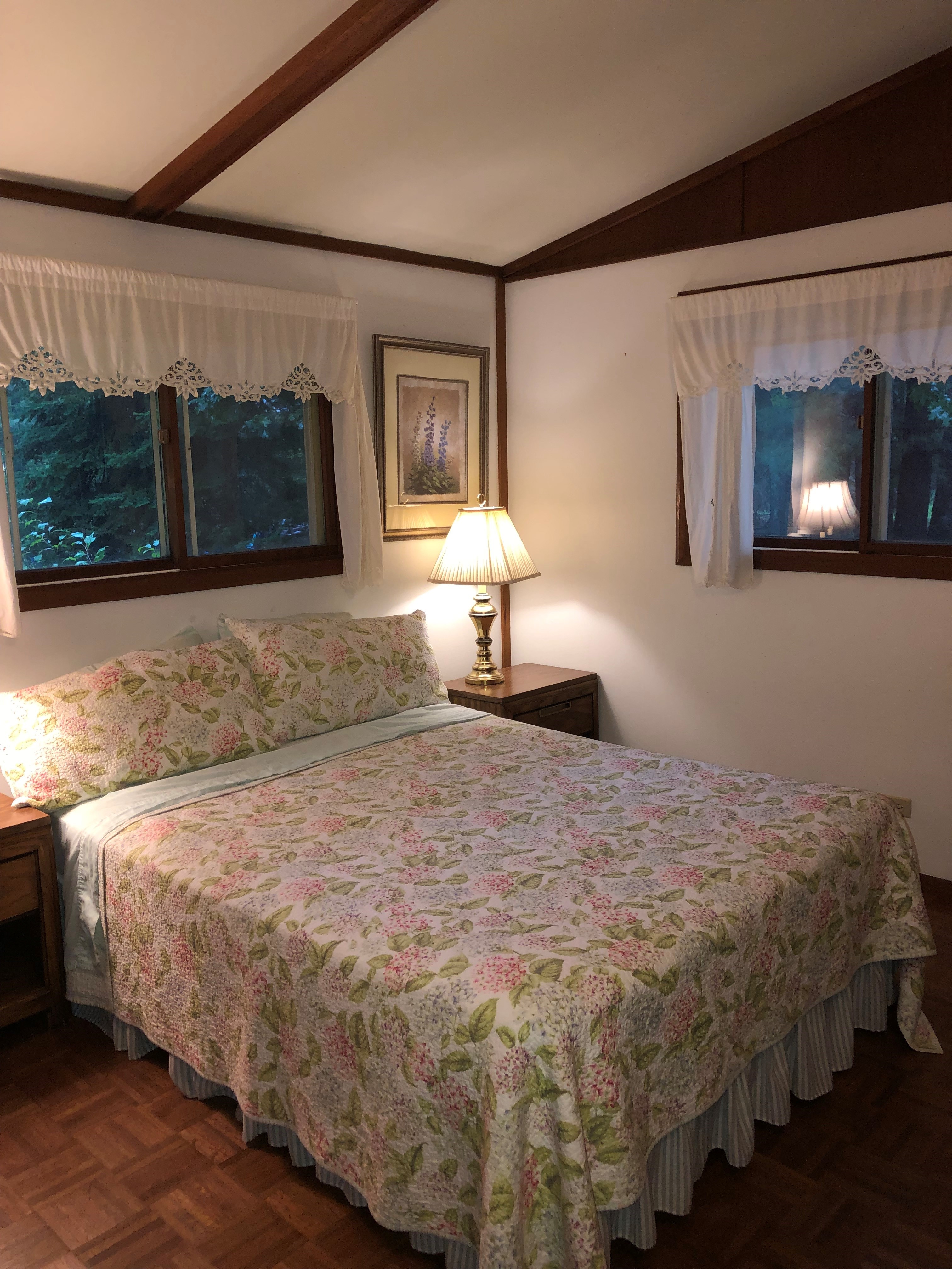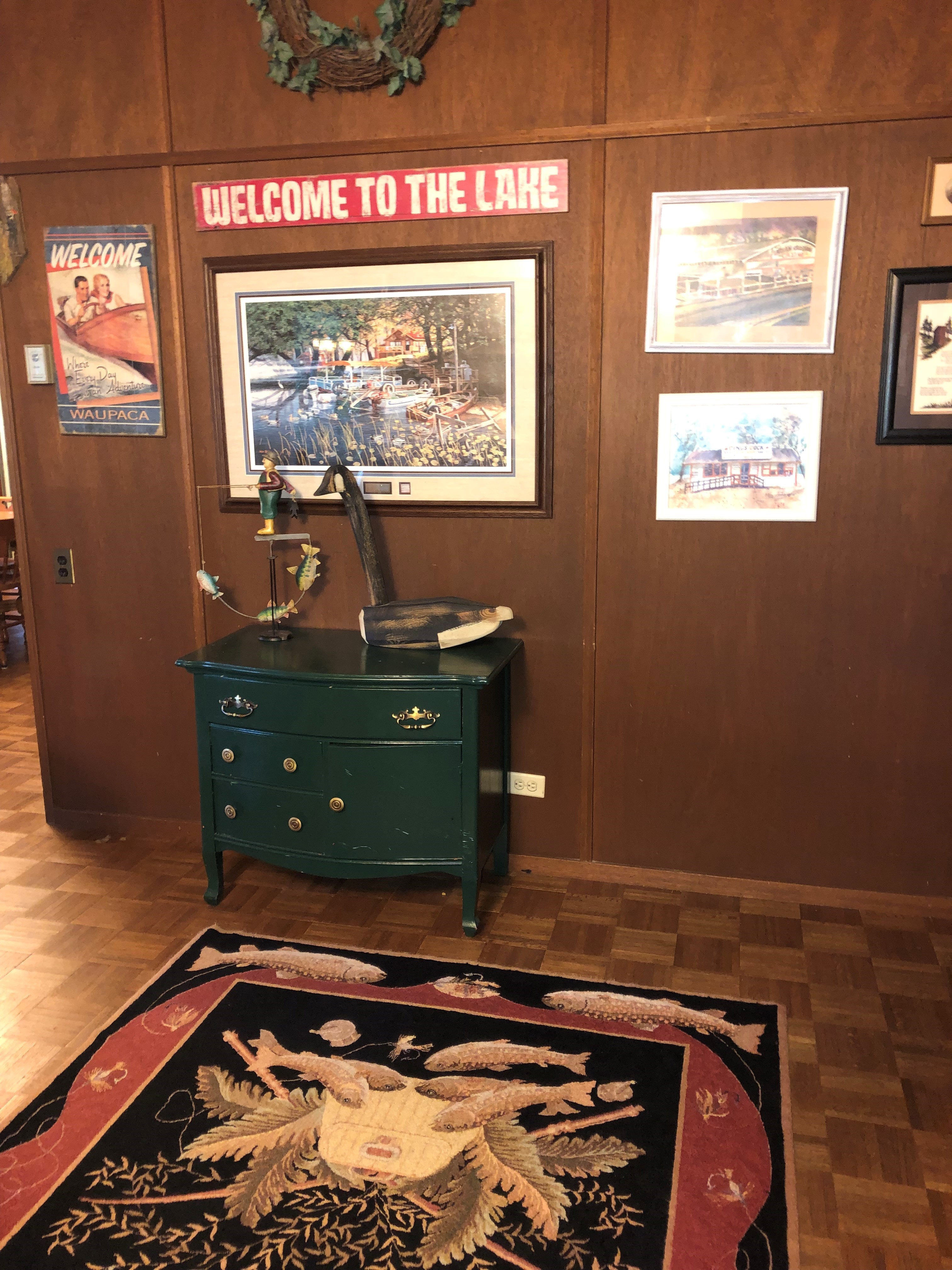 Pau Hana Retreat is located on a huge wooded lot on beautiful Beasley Lake of Waupaca's Chain O' Lakes. This lakeside retreat has 4 bedrooms, 1 1/2 baths, spacious screen porch, deck, dock, and much more. There are 2 queen beds and 4 twin beds plus a futon and daybed on the screened in porch. Included are all linens and towels, fully equipped kitchen, TV, wireless internet, 2 canoes, washer and dryer, gas and charcoal grills. Enjoy relaxing around the outdoor fire pit - perfect for toasting marshmallows! No smoking and no pets, please. Open year round!