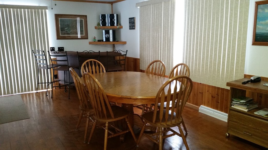 This 3-bedroom, 2-bathroom house has a fireplace in the living room, bar in the dining area, new kitchen appliances, rec room with a 52" inch, and is located on Wilson Lake, the southern most lake of the Phillips Chain, also called the Wilson Flowage. The chain consists of 4 lakes and approx. 1,200 acres of water that stretches into downtown Phillips. The house rests on just over an acre of land at the end of a dead end road reasonably secluded from neighbors but still only 10 minutes from Phillips and a bar/grill nearby. The abundance of tree cover around the lake makes this a desirable body of water for water sports of all kinds due to the calm water even on windy days. This makes for a relaxing tour of the lakes on the 6 person pontoon boat that is available for your leisure time. (pontoon boat is an additional charge - see price guide). Includes 12' fishing boat with motor, 16-foot canoe, 4-person paddle boat, life jackets & paddles at no charge. There is abundant wildlife all around the area with almost daily sightings of deer right in the back yard.