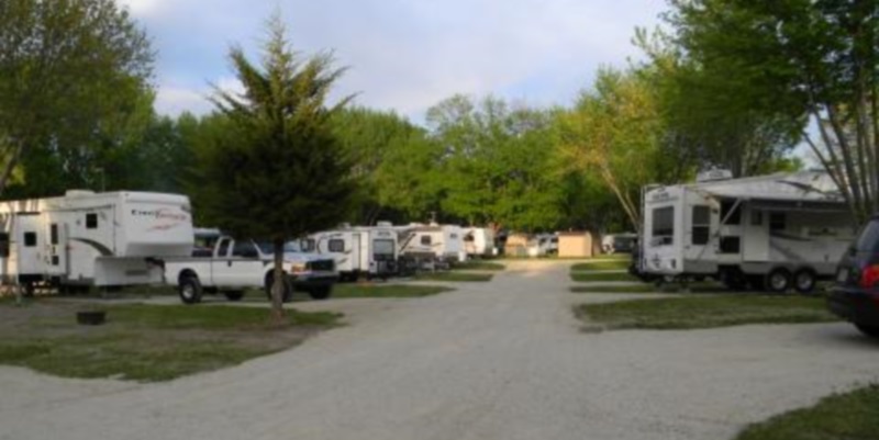RV Campground featuring hot showers, electric/water sites, rustic and large sites, VIP back in sites, VIP pull through sites, swimming pond, fishing pond, store, bar, 2 playgrounds, horseshoe pit, tether ball, volleyball and gaga pit.
