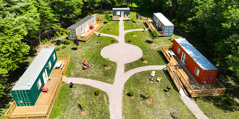 The large pines and massive oak trees of Yukon Trails Camping & RV Resort near Wisconsin Dells surrounds each spacious site. Enjoy rustic family camping, in true Wisconsin fashion, combined with our modern facilities and amenities. Savor our hot breakfasts on the weekends featuring our fresh donuts, biscuits & gravy, cakes, sausage, hot coffee, and so much more! Some weekends fill up on our famous breakfast buffets. Indulge in our Friday Night Fish Fry at The MilePost or we will gladly deliver to your site. If you're searching for a unique vacation experience in the Wisconsin Dells, consider staying at the Tiny House Container Village at Yukon Trails. These charming container tiny homes are the perfect alternative to a traditional hotel stay, providing a cozy atmosphere with modern amenities. The tiny house container village offers easy access to nearby attractions, including water parks and outdoor recreation areas. Built by SI Container Builds, these rentals are an eco-friendly vacation option for your next getaway. At Yukon trails Camping & RV Resort, you’ll discover a retreat where you can hike and explore our backwoods trail on foot, bike, or golf cart. Come play putt putt, or ride the train, then cool off with an ice cream cone or smoothie. Enjoy a campfire at your site or you can join in one of our many activities, cookouts, or events every weekend. Be sure to check out our free movie theater, along with cornhole arena, disc golf course, HUGE playgrounds, basketball, volleyball, horseshoes, and more!