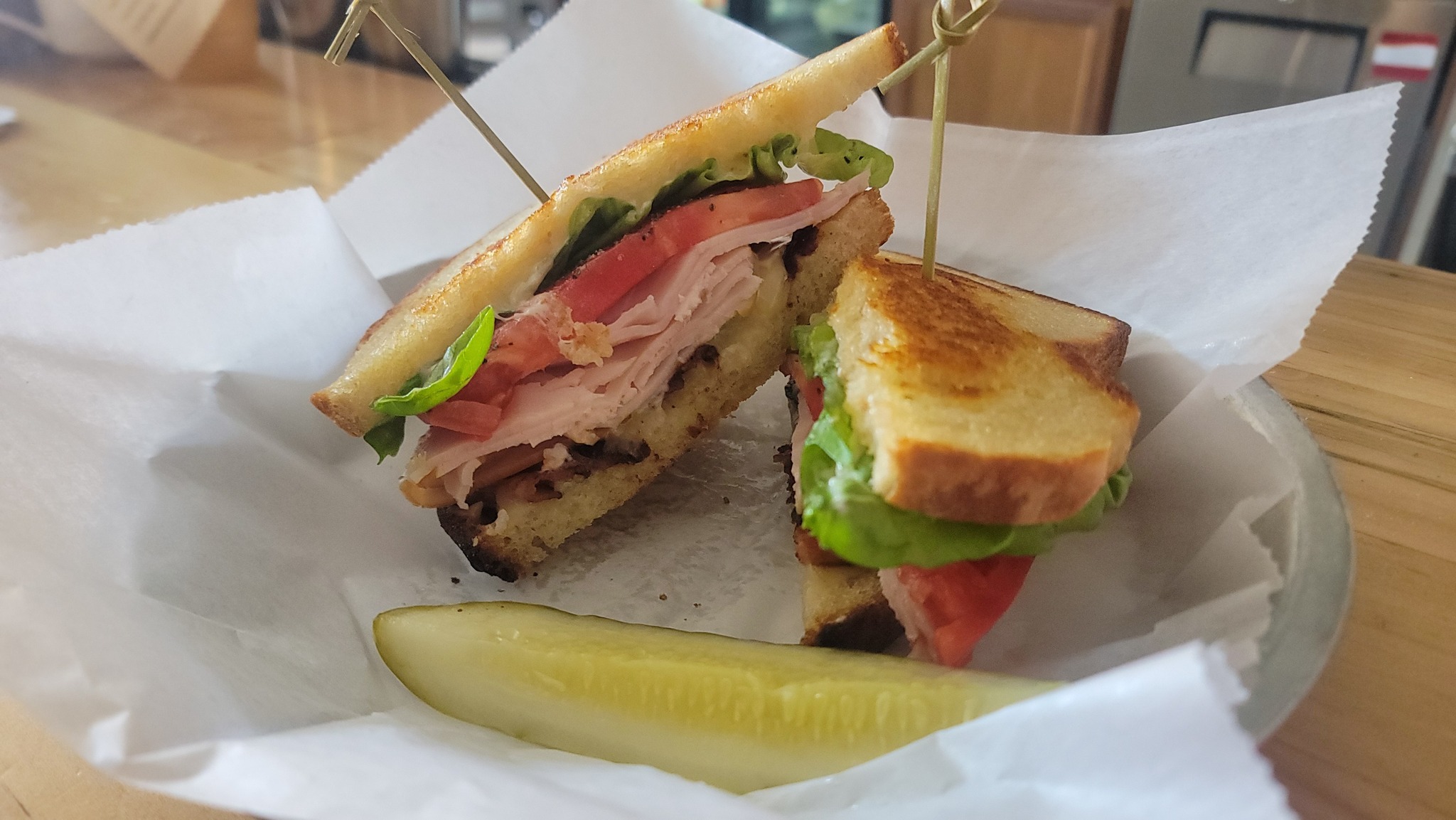The Bakery Bar offers a cozy spot to enjoy breakfast and lunch. The menu features fresh, from-scratch meals made with locally sourced ingredients whenever possible. Sandwiches on homemade breads like sourdough, dill rye, and classic white are featured. Guests can also enjoy pastries, coffee, beer, and wine in a welcoming atmosphere for families and friends.