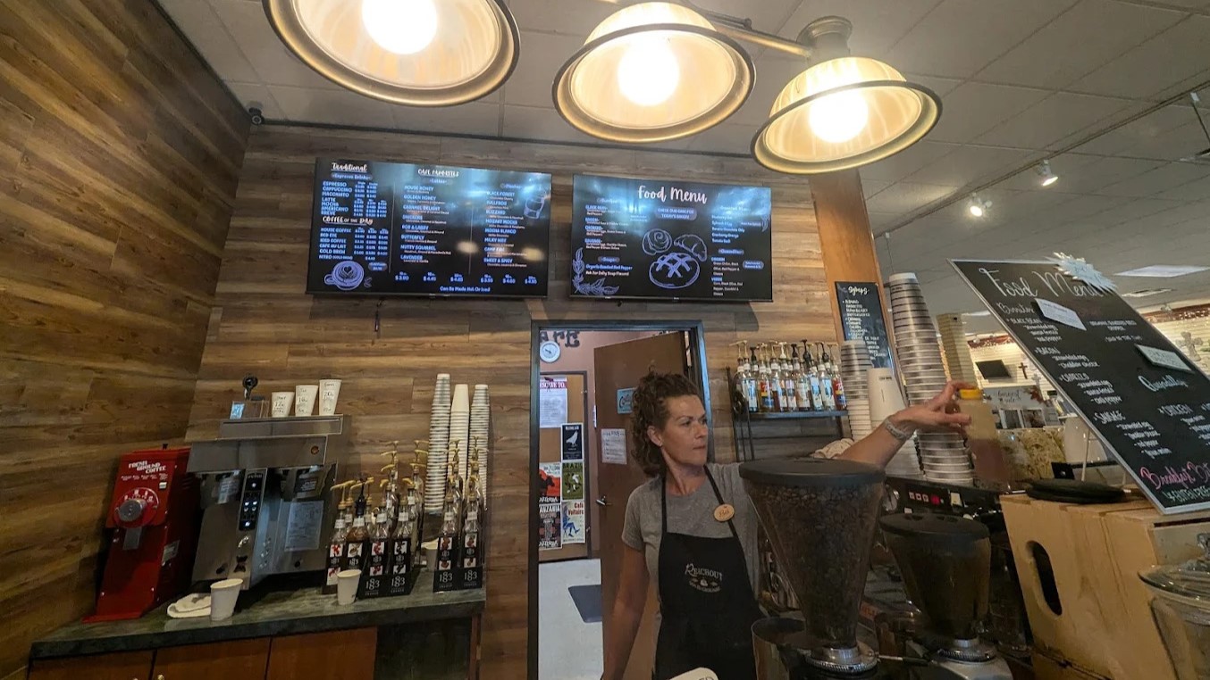 Solid Grounds Coffee Shop is a great atmosphere for getting a little work done while sipping on a delicious latte. Solid Grounds Coffee Shop, located inside ReachOut Books, features Colectivo Coffee, bakery items, soups, and delicious drinks, including traditional espresso drinks, lattes, cappuccinos, frappes, Italian sodas, and fruit smoothies. Enjoy a coffee on the patio and check out the beautiful wall hand-painted by one of their own very talented baristas from many years ago!