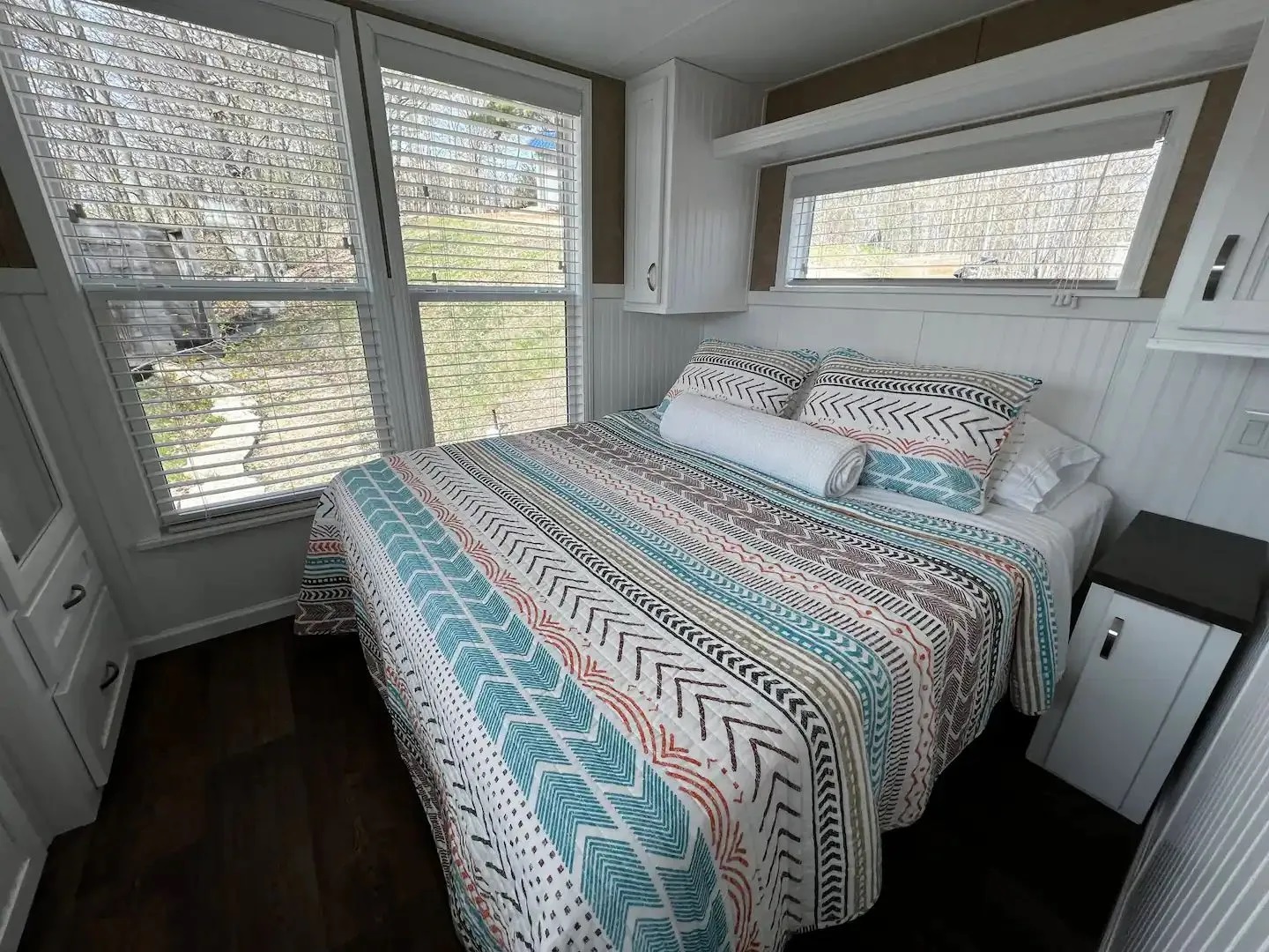 This is a park model home with a double loft. 1- queen bedroom on main floor. Sofa Sleeper in the living room. The loft has 2 pull out sleepers.