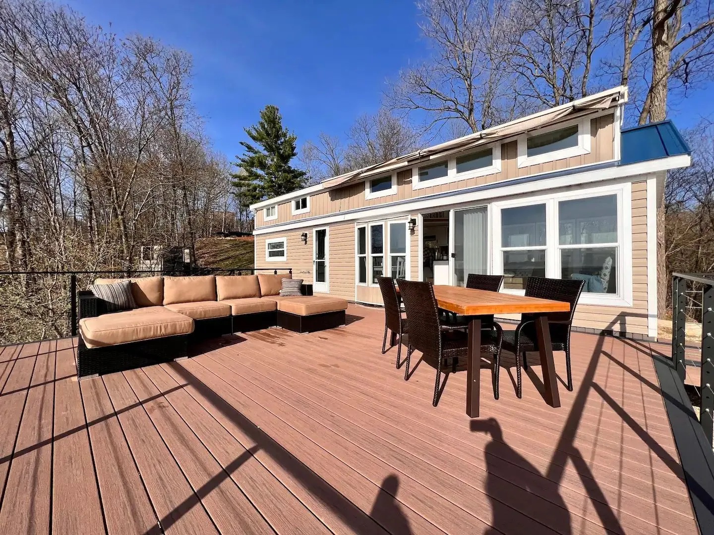 1 bedroom 1 bath with loft. Cozy home where you can see Paradise. This memorable place is anything but ordinary. Views for miles of the Mississippi River, bluff tops and you can soar with the Eagles. What a place to relax and enjoy what is call "God's Country". This is promised to be a one of a kind view. The Deck with comfortable outdoor seating Located in the heart of WIsconsin's Driftless Region.