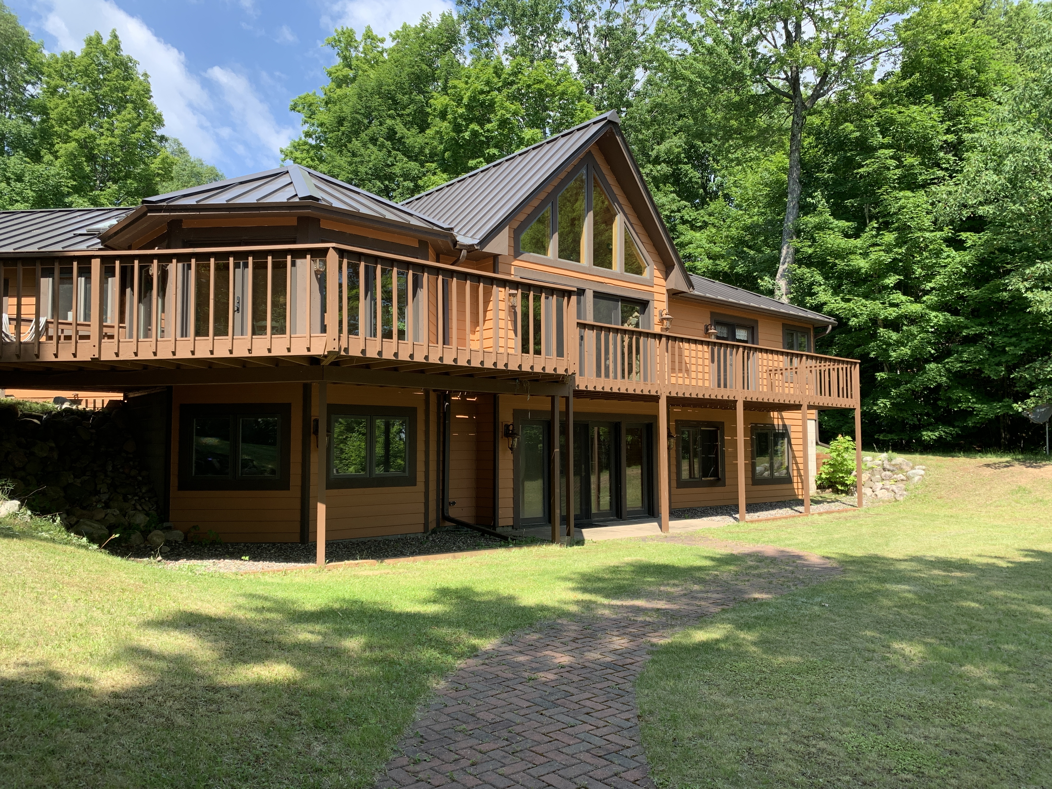 Inside, the main living space has a gracious open floor plan that seamlessly combines the living room, dining room and kitchen. The dining room offers direct access to the wraparound deck. This level has 2 bedrooms and 2 bathrooms.The ground level has another living space, bar, game room with arcade games and a laundry room. Direct access to the back yard. This level has 2 bedrooms and one bathroom. Private, quiet vacation within 15 Miles to downtown Minocqua or 10 miles to Boulder Junction. Location: Ike Walton Lake (1,415 acres)From Minocqua: 15 Miles From Boulder Junction: 10 Miles