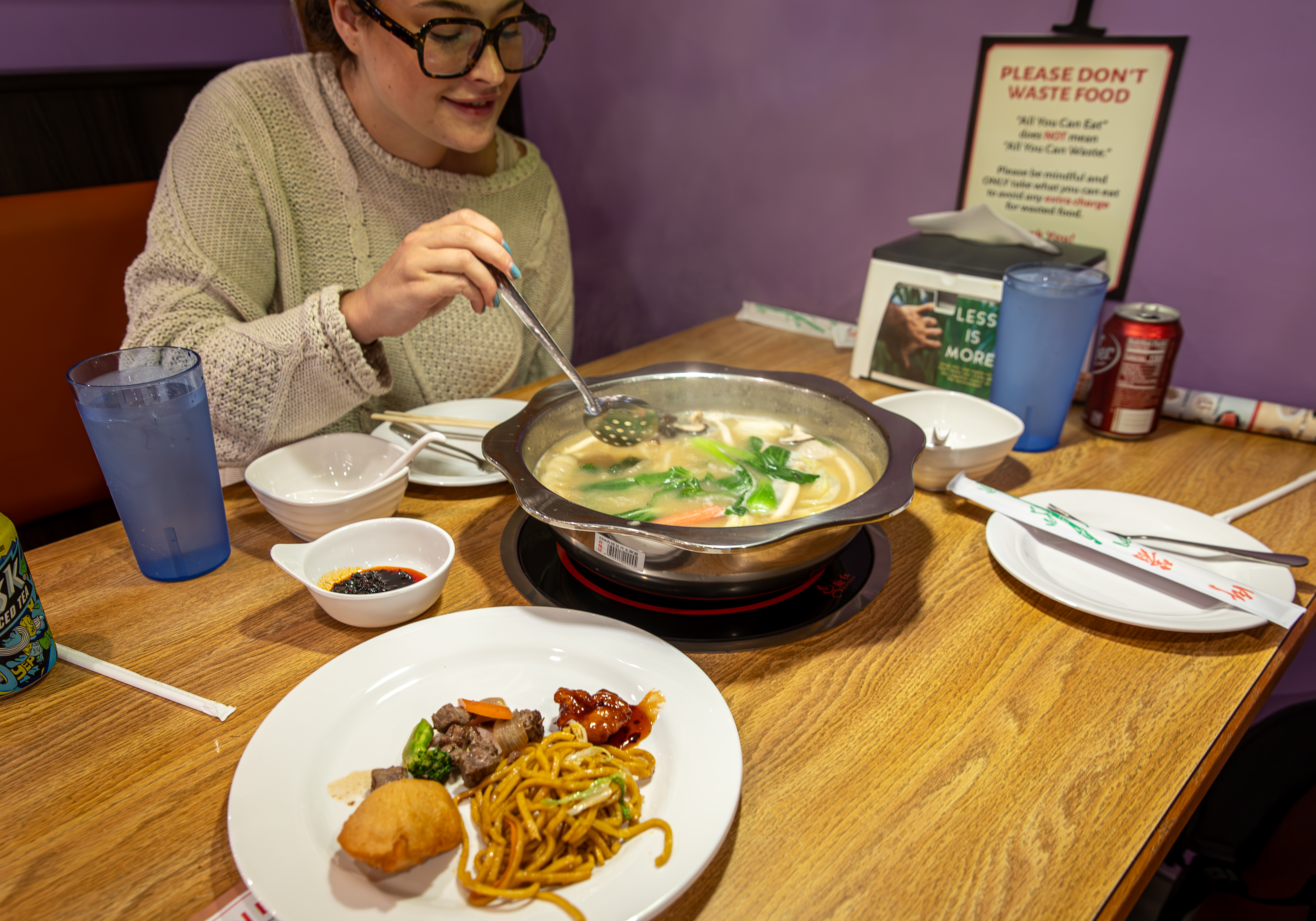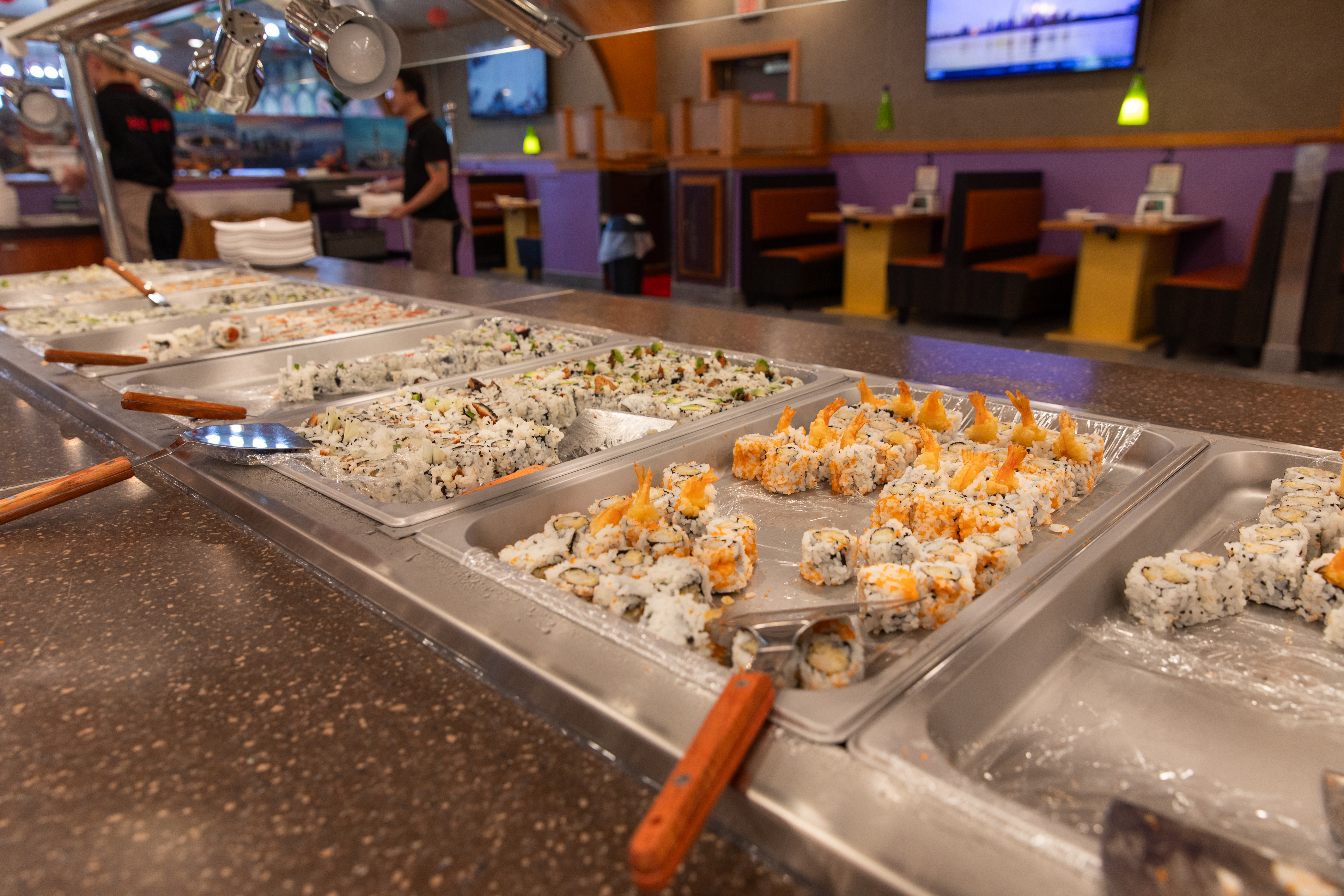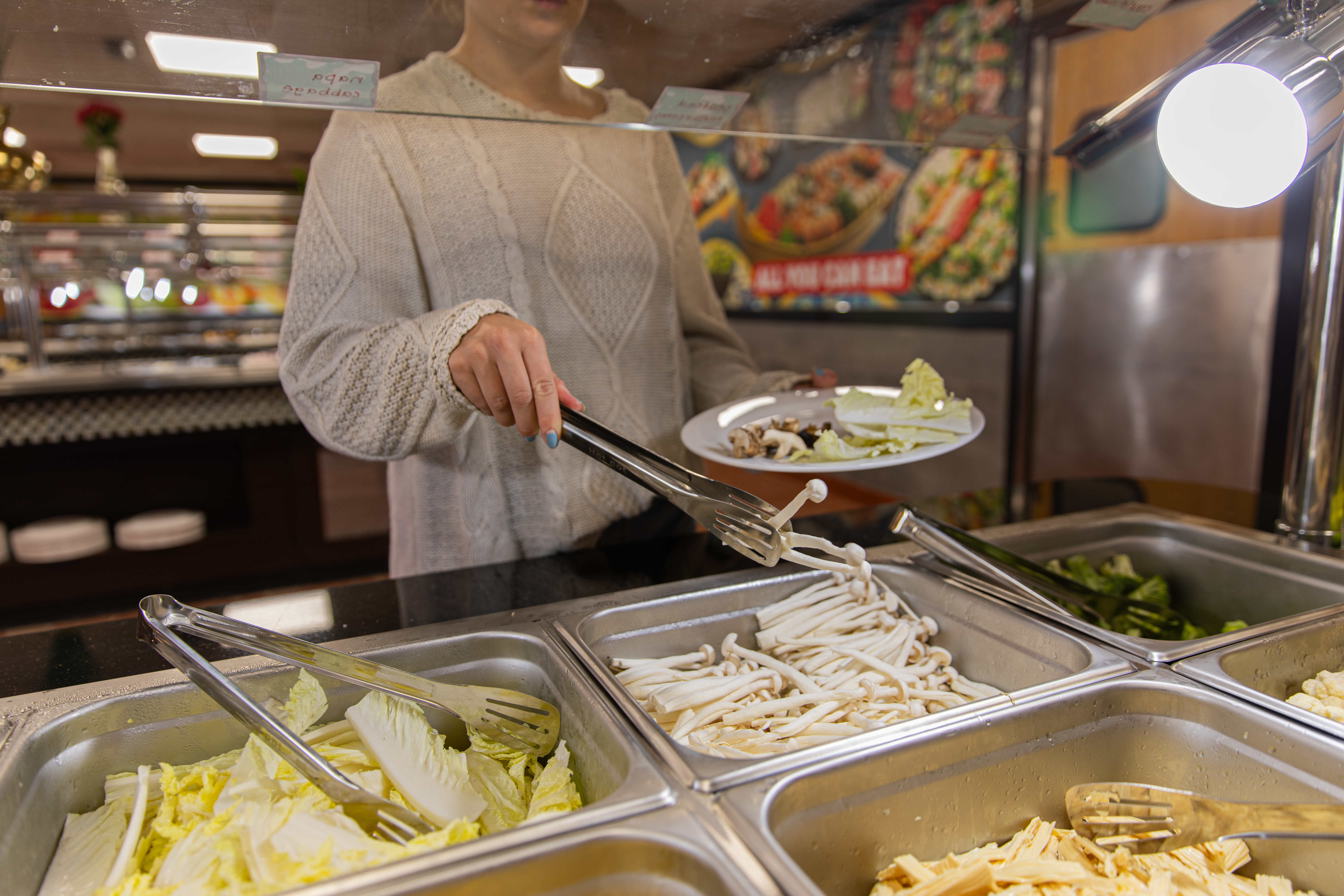 Hot Pot Barbecue and Sushi is an all-you-can-eat restaurant offering a diverse selection of food. Guests can enjoy a customizable dining experience by selecting from a variety of ingredients to cook at their table, alongside a wide assortment of sushi rolls and barbecued meats.