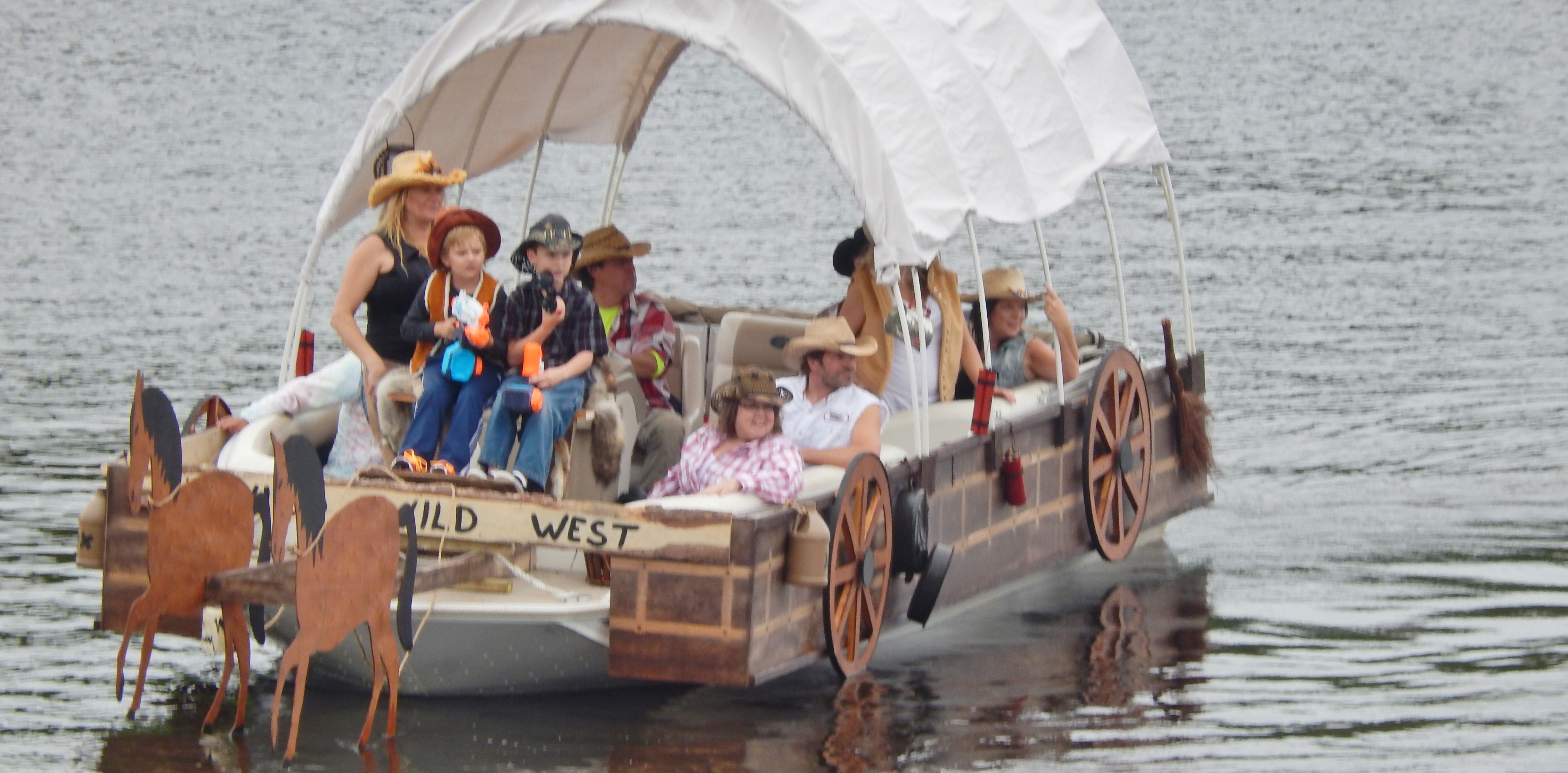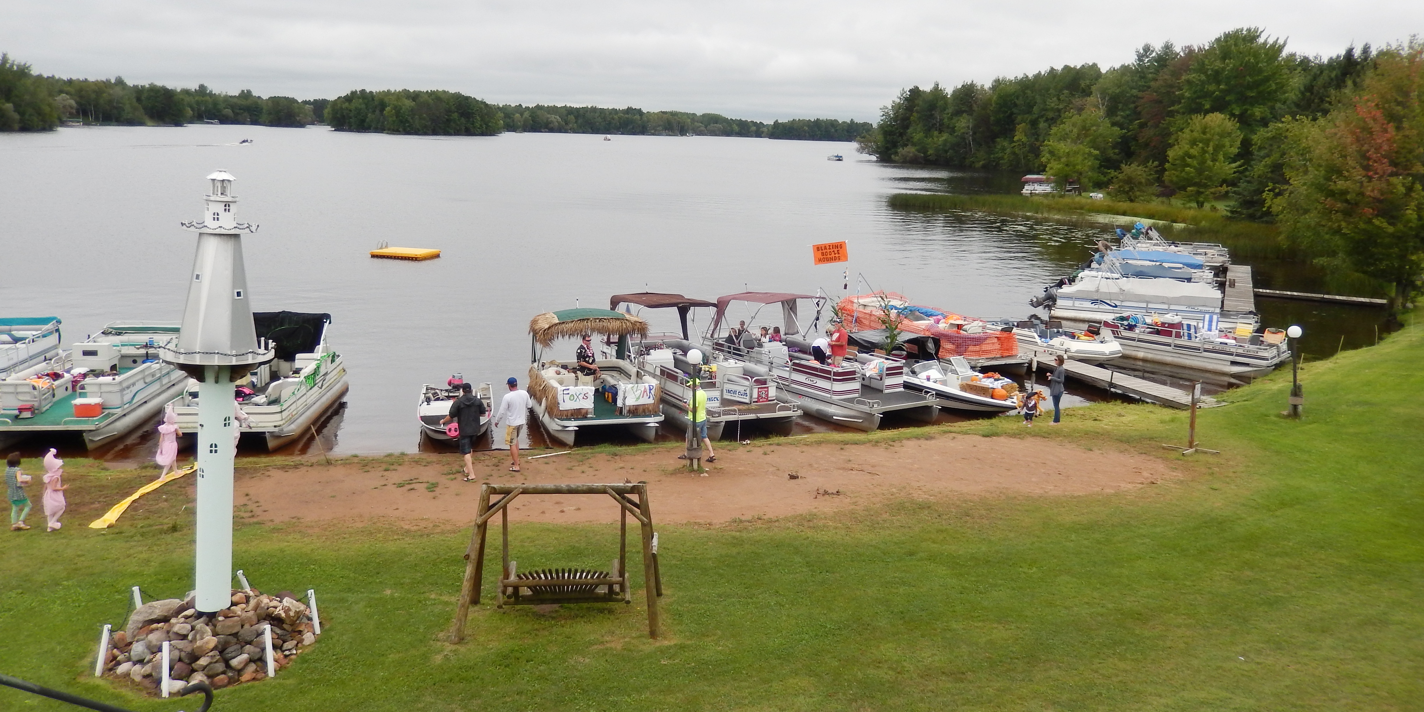 Use clues to find a list of ten items hidden on the Phillips Chain of Lakes and win a bunch of worthless, no-good prizes; plus prizes for best decorated boat/pontoon and best costume(s). One big raffle at 6:30pm. Entry fee: Sense of humor. Useful items to bring along: lake/road map, bilingual dictionaries, and binoculars. Party on the deck after the hunt.