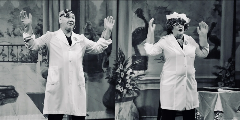 These Boomers are partying at Pelican Roost, the very active retirement community that is home to the 18-different characters played by the show’s two actors. Pelican Roost is where 70-something is the new 20-something…only with looser skin.