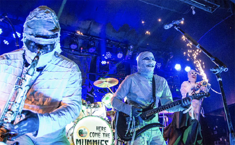 Here Come the Mummies is a nine-piece funk-rock band of 5000 year-old Egyptian Mummies with a one-track mind. Their "Terrifying Funk from Beyond the Grave" is sure to get you into them (and possibly vice versa). Since their discovery HCTM has been direct support for P-Funk, Al Green, Mavis Staples, KC and the Sunshine Band, and Cheap Trick; rocked Super Bowl Village; become a regular on The Bob and Tom Show; played massive festivals like Summerfest, Summer Camp, Common Ground, Musikfest, and Suwannee Hulaween; and sold tickets by the thousands across large swaths of North America. Some say they were cursed after deflowering a great Pharaoh’s daughter. Others claim they are reincarnated Grammy-Winning studio musicians. Regardless, HCTM’s mysterious personas, cunning song-craft, and unrelenting live show will bend your brain, and melt your face.