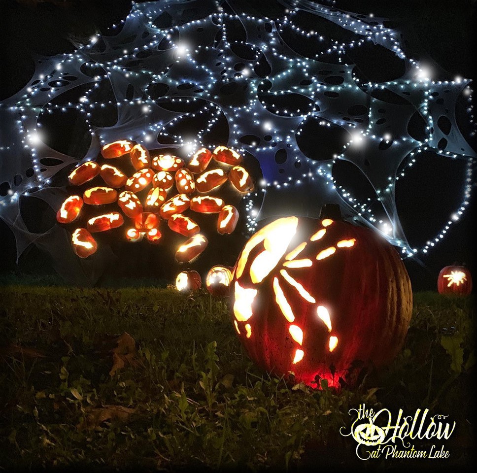 The time children are little is so brief, and we believe that they should not be cheated of a magical experience this Halloween season! We here at The Hollow at Phantom Lake have put safety measures in place and limited tickets this year in hope that our outdoor walk, with time slots for distancing, waivers, masks, etc. allows families a low-risk, non-scare, option this fall.  Please help support the Phantom Lake YMCA Camp Scholarship fund with a stroll through our outdoor, socially distanced, family friendly Jack O'Lantern wonderland! Over 1000 hand carved illuminated pumpkins adorn our enchanted forest trails covered in pixie dust. From black cats and broomsticks to spiders and hooting owls, The Hollow promises to stir the imagination and rekindle the nostalgia of the season. Discover the mystery and wonder of our unique glowing Jack O'Lantern art installations against the back drop of nature by night, the only one of its kind in Wisconsin!