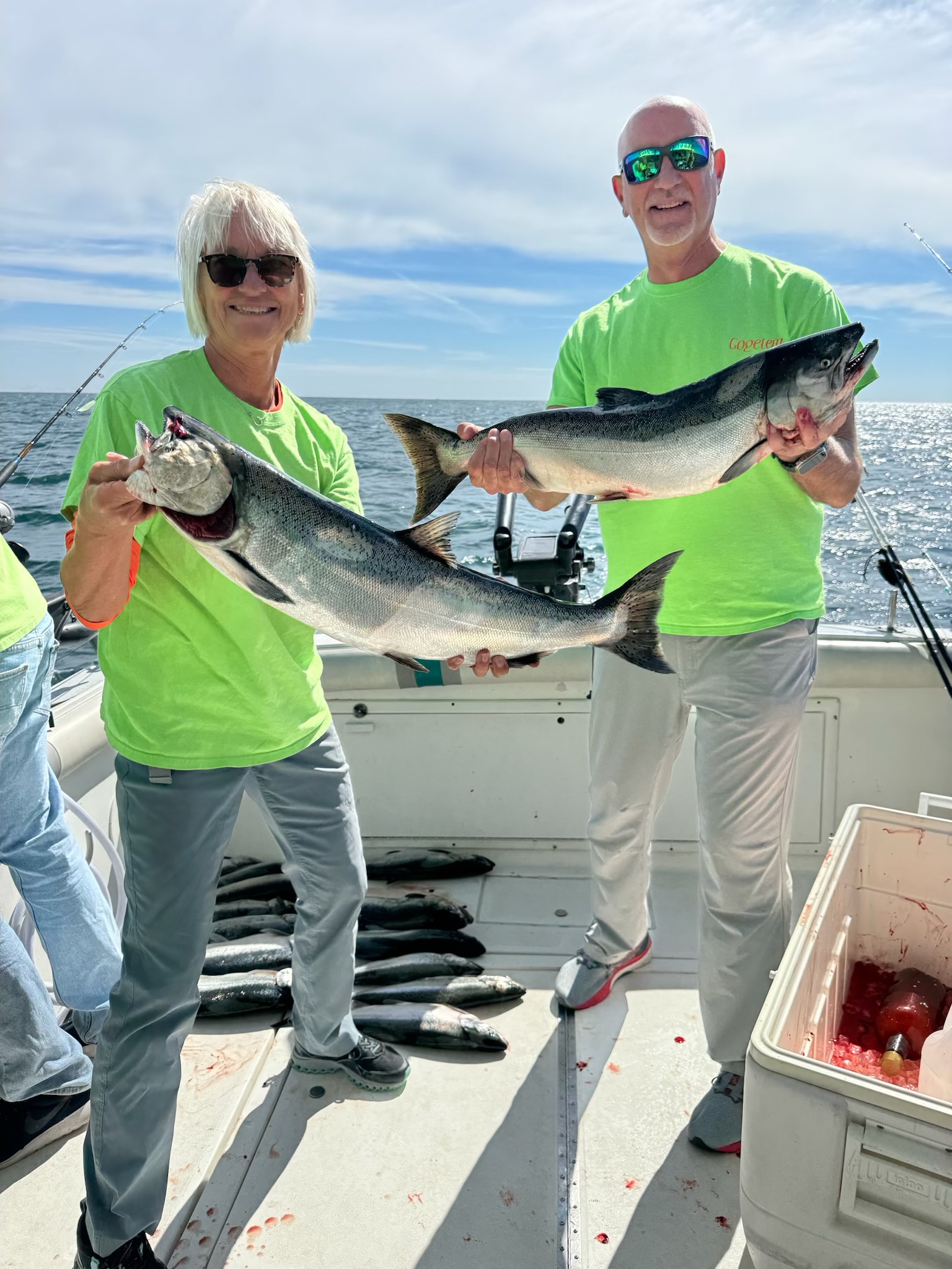 Captain Michael of Gogetem Charters operates a well maintained and spacious 28.5' Baha Cruiser ProFisherman. This impressive boat features twin 350 horsepower motors and a below deck walk in bathroom. The crew at Gogetem Charters pride themselves on providing a clean and exceptional experience for all of their clients. Anglers can expect an opportunity to catch a variety of salmon and trout fishing out of Two Rivers, Wisconsin.