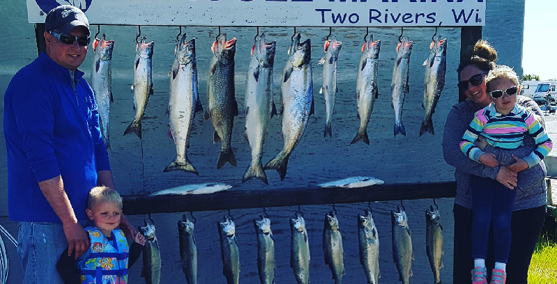 The charter boat is easily accessible in Two Rivers at Seagull Marina, situated near three hotels and various amenities. Fishing in Lake Michigan from Two Rivers is renowned for its exceptional coho and king salmon catches, along with rainbow, brown, and lake trout.