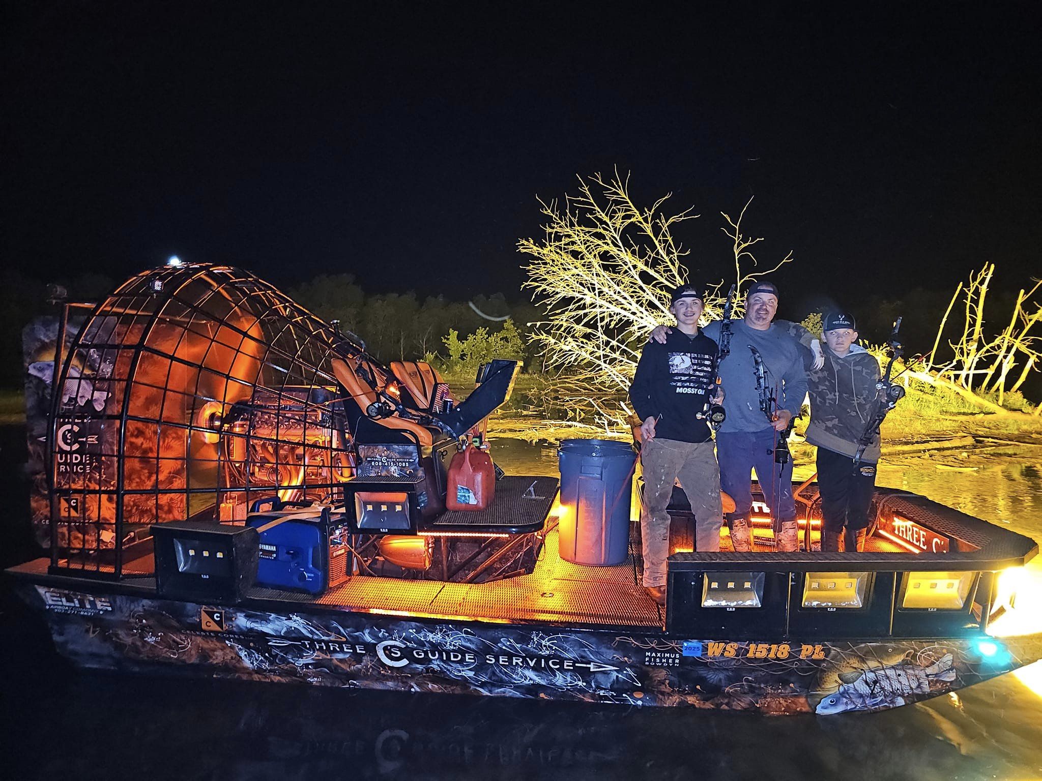 Three C's Guide Service in Wisconsin Dells offers thrilling bowfishing and airboat tours along the Upper Wisconsin Dells River. Perfect for all skill levels, they specialize in night-time adventures targeting invasive species, blending exciting fishing with scenic river exploration, and conservation. Ideal for families, groups, and events, they ensure a memorable experience with expert guides and high-quality equipment. Join Three C's Guide Service for an exceptional outdoor adventure, contributing to ecosystem conservation while enjoying the unique beauty of the Wisconsin River. Discover the thrill of bowfishing with Three C's Guide Service – every trip promises a blend of adventure, conservation, and unforgettable memories