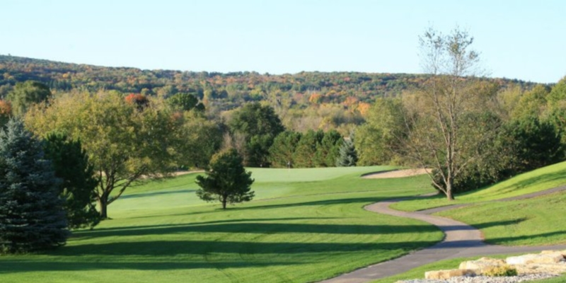 A rolling 18 hole golf course featuring elevated tees and undulating greens. Set amid the majestic Baraboo Bluffs, the course is known for its scenic views, picturesque terrain, and lightning quick greens. A great variety of holes give the course its character with water coming into play on seven of the final nine holes. Offering friendly service and a challenging and beautiful golf course--an ideal spot for the one day golf getaway or week long vacation. Golf packages.