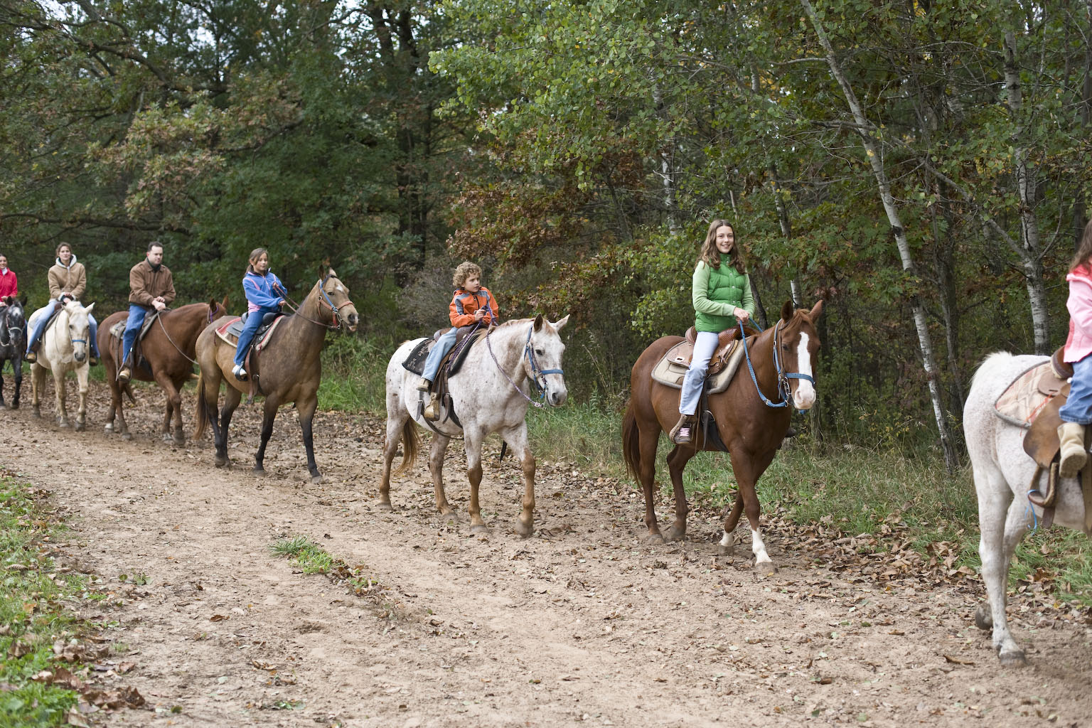 Open every day of the year! Enjoy a one-hour guided trail ride through 250 acres of scenic woods, river & rolling fields near Wisconsin Dells. From beginners to seasoned veterans, we have a horse that you will enjoy! Safe, friendly horses and courteous staff make it fun for the whole family. Private advanced rides available.