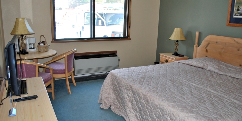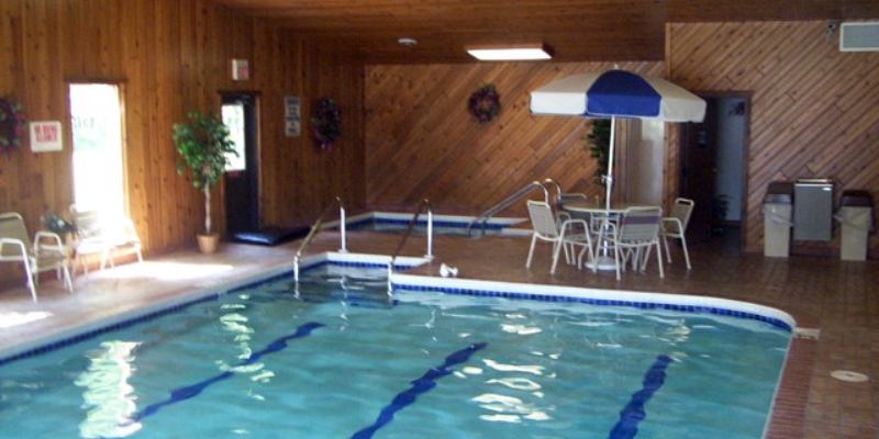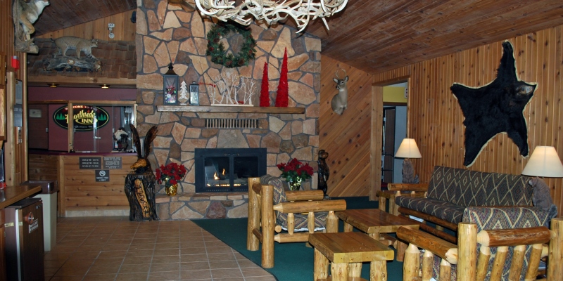 Twenty-eight rooms. Saltwater swimming pool and hot tub spa, whirlpool suites, cozy lobby and fireplace. Front door access to major snowmobile trails. Continental breakfast, deer viewing rooms, fish cleaning house, restaurant access. In-room refrigerators, remote color cable TV with DVD and wi-fi. Snowmobile rentals available nearby.