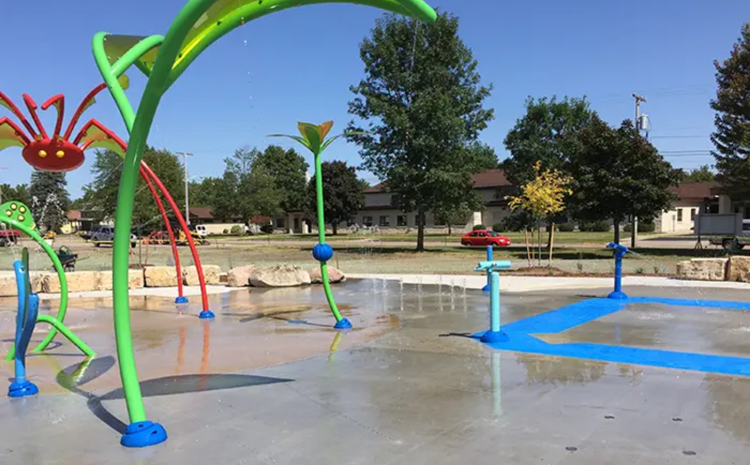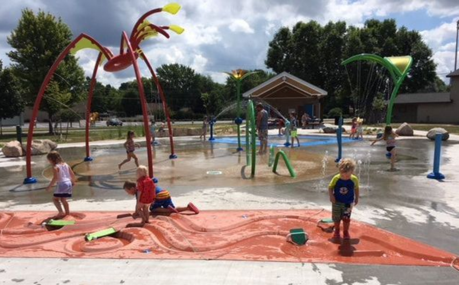 The Splash Pad is open Memorial Day through mid-September, 10:00 a.m. to 8:00 p.m. or dusk, whichever is earlier; dates and hours may be shortened or extended without notice based upon weather.