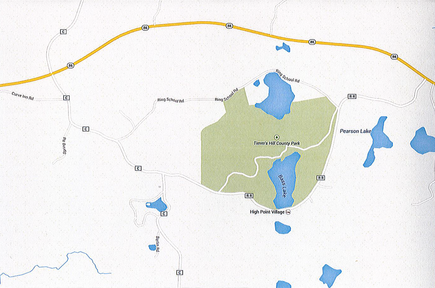 Located at Timm's Hill County Park near Timm’s Hill, Wisconsin’s highest geographical point, these 9 miles of non-motorized trails traverse some of the most hilly terrain in the state. The landscape viewed from the top of the observation tower on Timm’s Hill is one not to be missed. Forests of hardwood and hemlock border the full length of the trail. This is one of the finest trail systems around. It also connects to the National Ice Age Trail and the Rib Lake Ski Area Trails via the Timm's Hill Trail. In the winter the trail is groomed for both classic and skate skiing by the High Point Ski Club with lighted night skiing available for groups by appointment; snowshoeing is allowed on the ungroomed portion of the trail. The vault toilets located at the park are available for use in the winter.