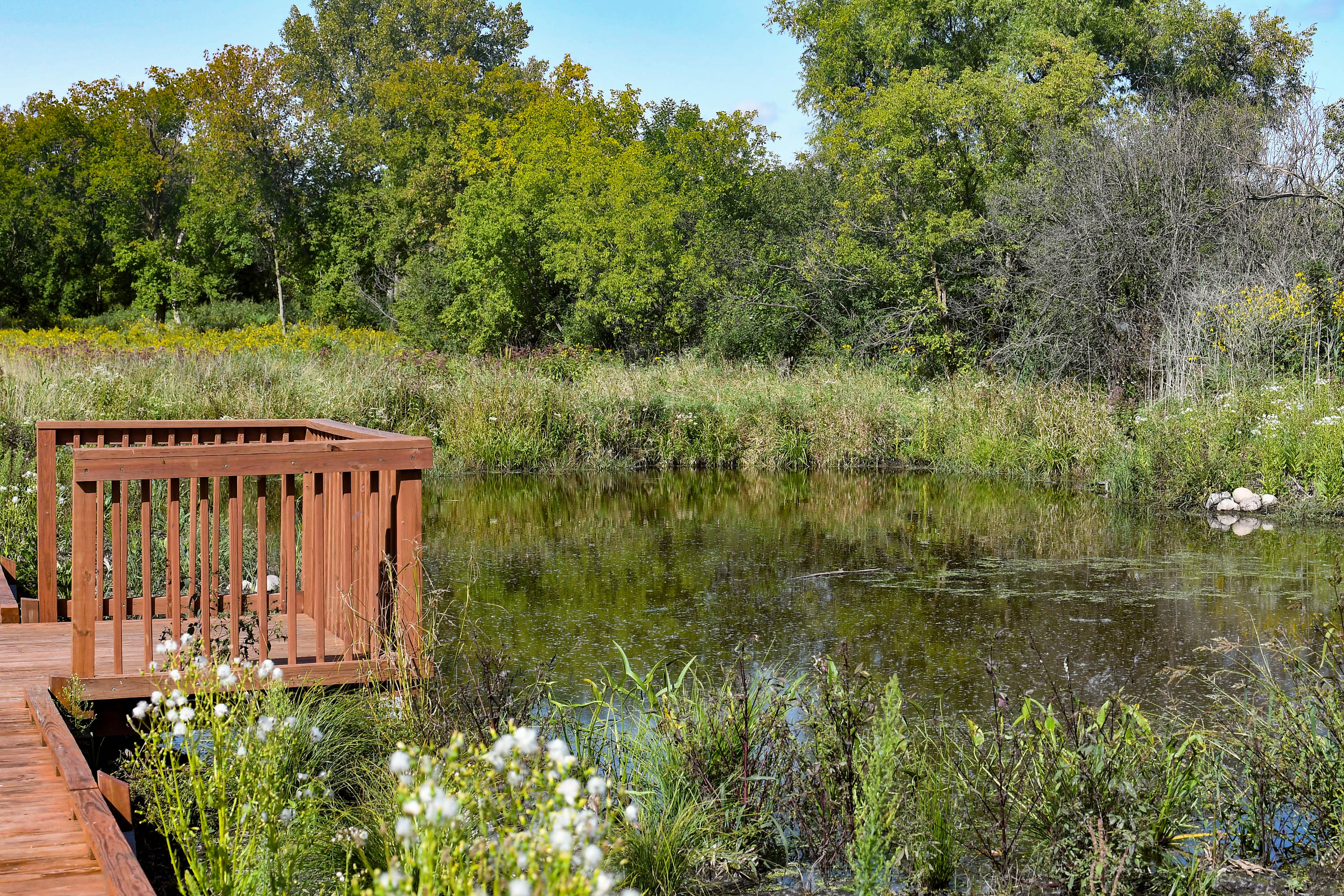 Park the car and step into one of Southeast Wisconsin’s best-kept secrets, 231 acres of peaceful natural beauty, ideal for walking, running, or simply reconnecting with nature. Explore over 4 miles of trails that wind through oak woods, deciduous forest, prairie, and wetlands. Stroll a boardwalk suspended over a marsh, or relax beside quiet ponds and rolling creeks.