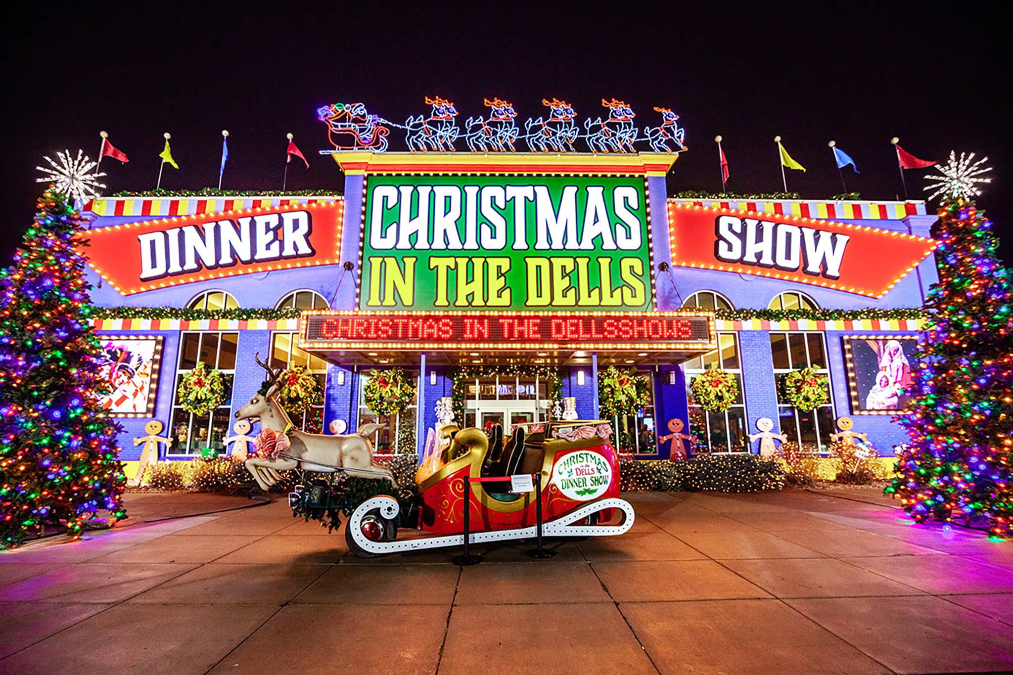 Christmas in the Dells Dinner Show (November – January 3rd) BRAND-NEW FOR 2025 – The Year of the Grouch! Experience Wisconsin Dells’ award-winning holiday spectacular with sugar plum fairies, soaring angels, playful elves, enchanted reindeer, Santa Claus, and the state’s largest living nativity. This dazzling multi-million-dollar show features singers, dancers, comedians, pyrotechnics, lasers, giant screens, and a powerhouse brass band plus a Four-Course Holiday Feast included with every ticket!