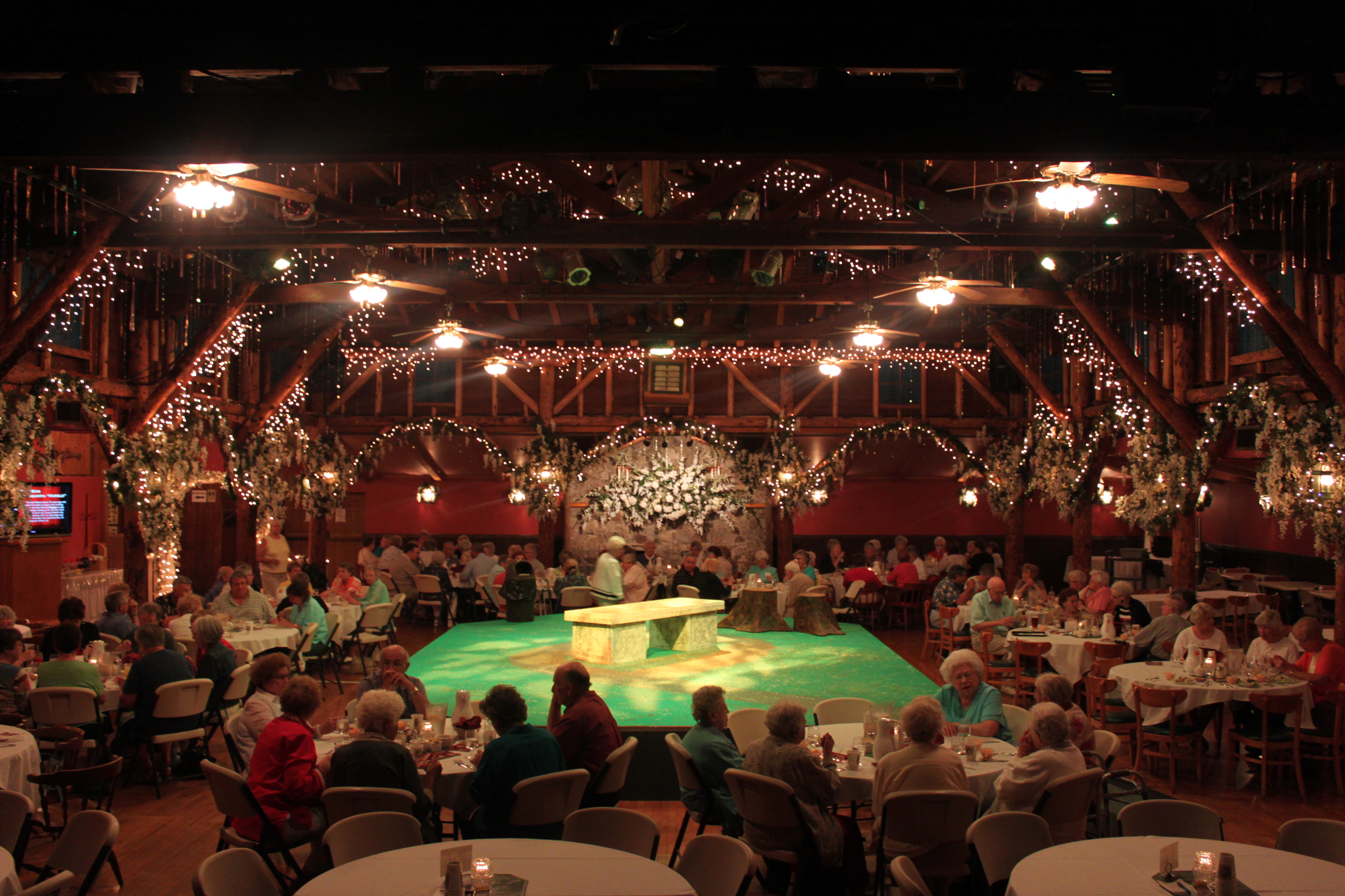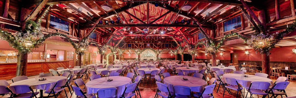 Its 2500 square foot solid maple dance floor, rustic tamarack log ceiling and twin stone fireplaces also make it an enchanting hall for weddings, holiday parties, fund-raisers, meetings and reunions.