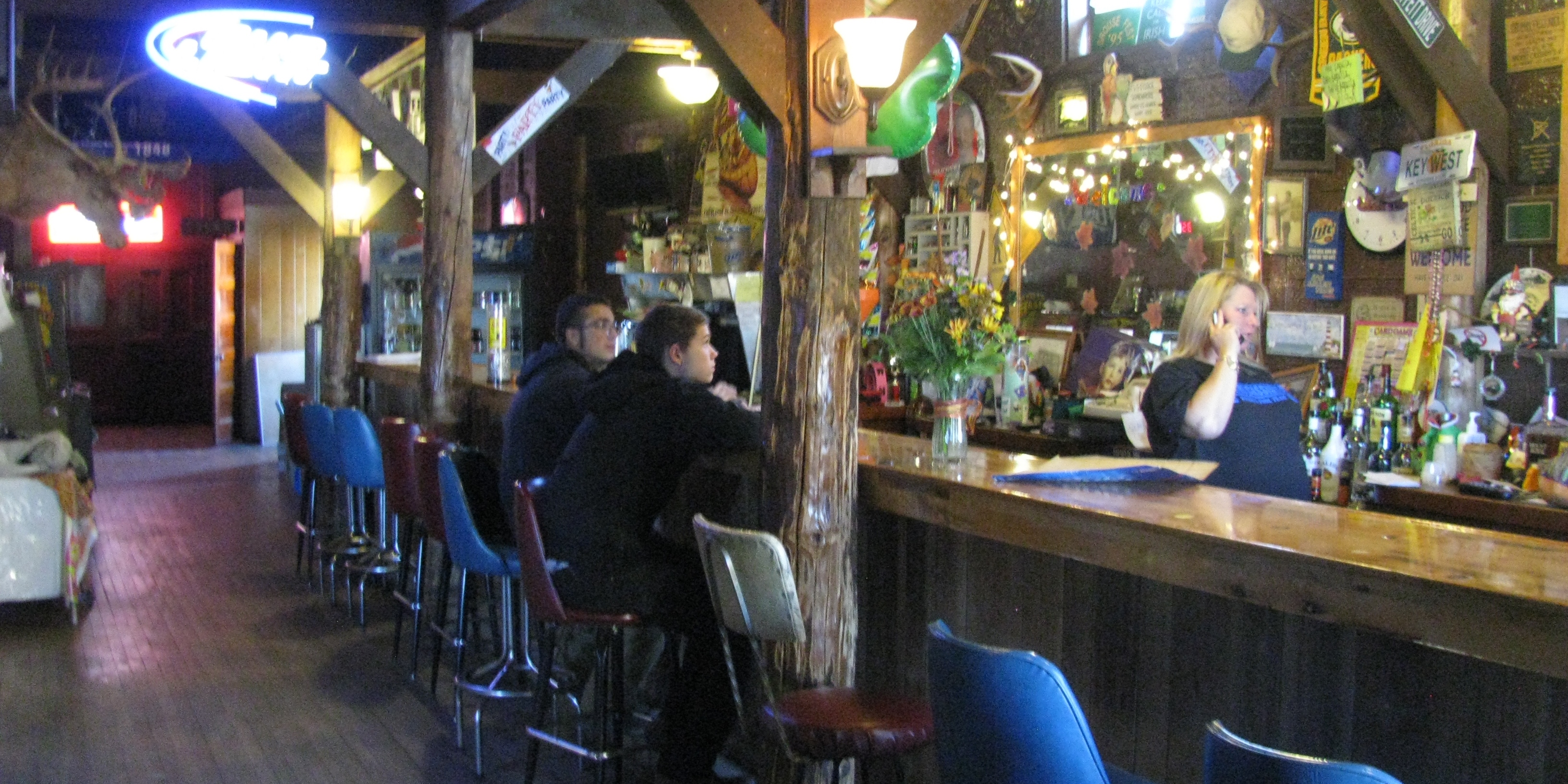 The place "where you stop for one & stay till two! This historic tavern is soon to be 100 years old. Frozen pizza and other snacks available.