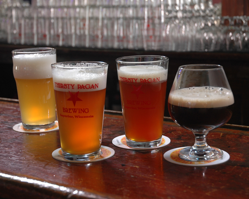 Thirsty Pagan Brewing is a brew pub serving craft beer (brewed onsite), pizza, salad, sandwiches, appetizers, and homemade desserts.House beers include North Coast Amber, Derailed Ale, Burntwood Black, India Pagan Ale, and Lawn Chair. There is also a variety of seasonal brews and guest taps, including cider from White Winter Winery.The pizza (made with real Wisconsin cheese, fresh veggies, and fine meats) was voted "Best Pizza in the Northland" in The Reader Weekly's 2013 "Best of the Northland" poll. The pizza menu includes some house favorites, along with rotating specialty pizzas — there's always something new to try.Thirsty Pagan Brewing also features live, local musicians most nights of the week. Visit their website for a list of musicians, as well as pizza and beer specials.