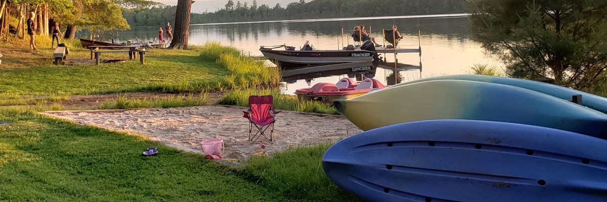 Historic Northwoods Resort on the shore of Garth Lake. Cottages, heated pool, boats, playground on beautiful 19 acres.