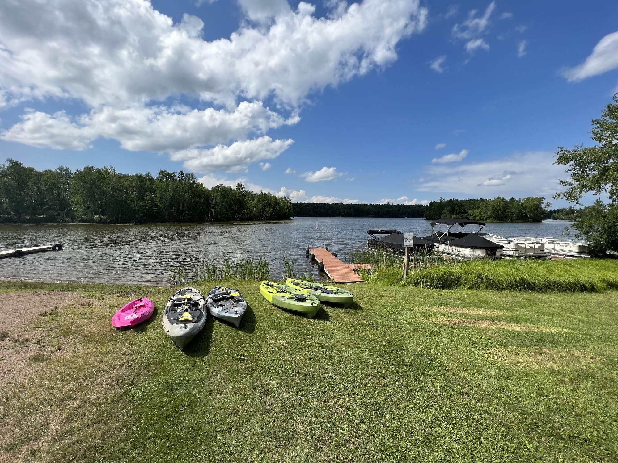 Each of the 4 year-round cabins feature their own private dock, firepit, and grill. We also have four seasonal RV sites with water, electric, and sewer hookups. When you stay with us, you’ll have direct access to the Price County ATV and snowmobile trails, our private sandy beach, as well as kayaks, paddleboards, canoe and a fish cleaning station.