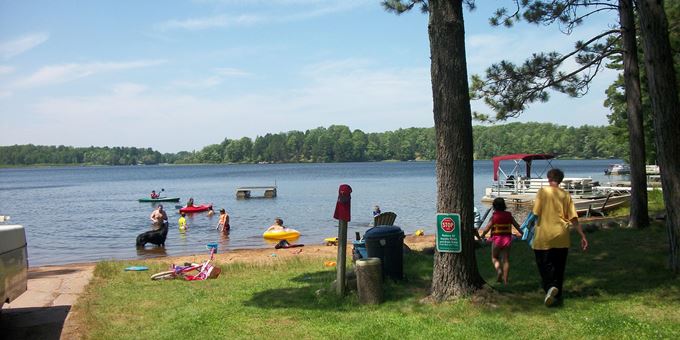 Reel Livin’ Resort offers cabin rentals, full-hookup campsites, and tent camping with electric. Guests can rent kayaks, paddle boards, pontoons, and fishing boats, and purchase firewood, ice, bait, and other essentials. The full-service Bar & Grill serves appetizers, sandwiches, pizza, and the famous Reel Burger. Recreational amenities include a basketball court, volleyball/badminton court, playground, game room, and sandy beach with swimming raft. Wi-Fi is available throughout the resort. Enjoy fishing, swimming, kayaking, snowmobiling, and all that Northern Wisconsin offers.