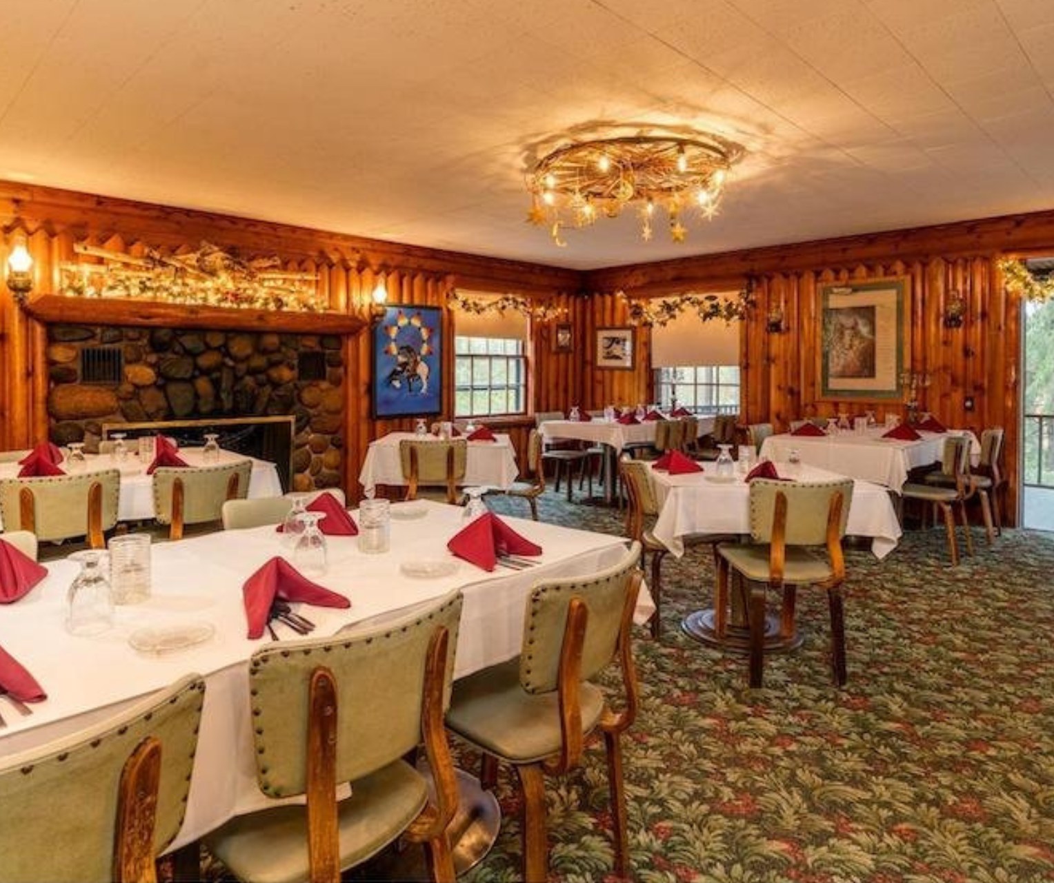 Cedar-plank walleye, steak Whitecloud, fresh seafood, ribs smoked in-house. Built in 1939, most of the decor is original with knotty pine interior, piano player.