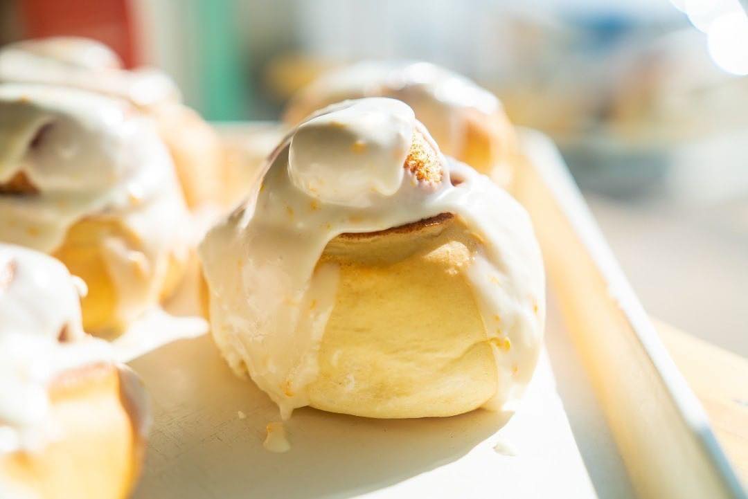 Upstairs, you'll find a cozy Airbnb where you can wake up to the smell of fresh cinnamon rolls and look down into the bakery from your room.