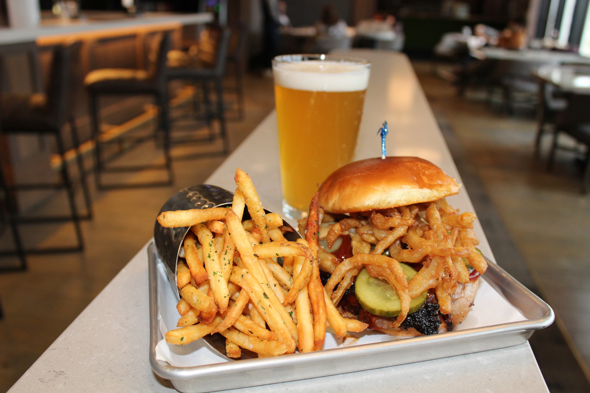 Savor tempting hickory-tinged aromas, picturesque course views, and saucy menu of salads, smoked-out sandwiches, tangy tacos, and mixed bbq platters in this year-round Clubhouse restaurant and bar. Offering to-go meats, meals and sides, including sweet mini cornbread loaves and a decadent custard-based apple pie bread pudding, turf is a smokehouse on fire.