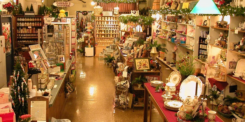 Gourmet coffee, fudge, candy, cappucino, wedding gifts, imported stationery, pottery, candles, Christmas decorations, and other fine gifts await the shopper here, where deep armchairs invite one to sit down for a chat or to watch the activity along Main Street.