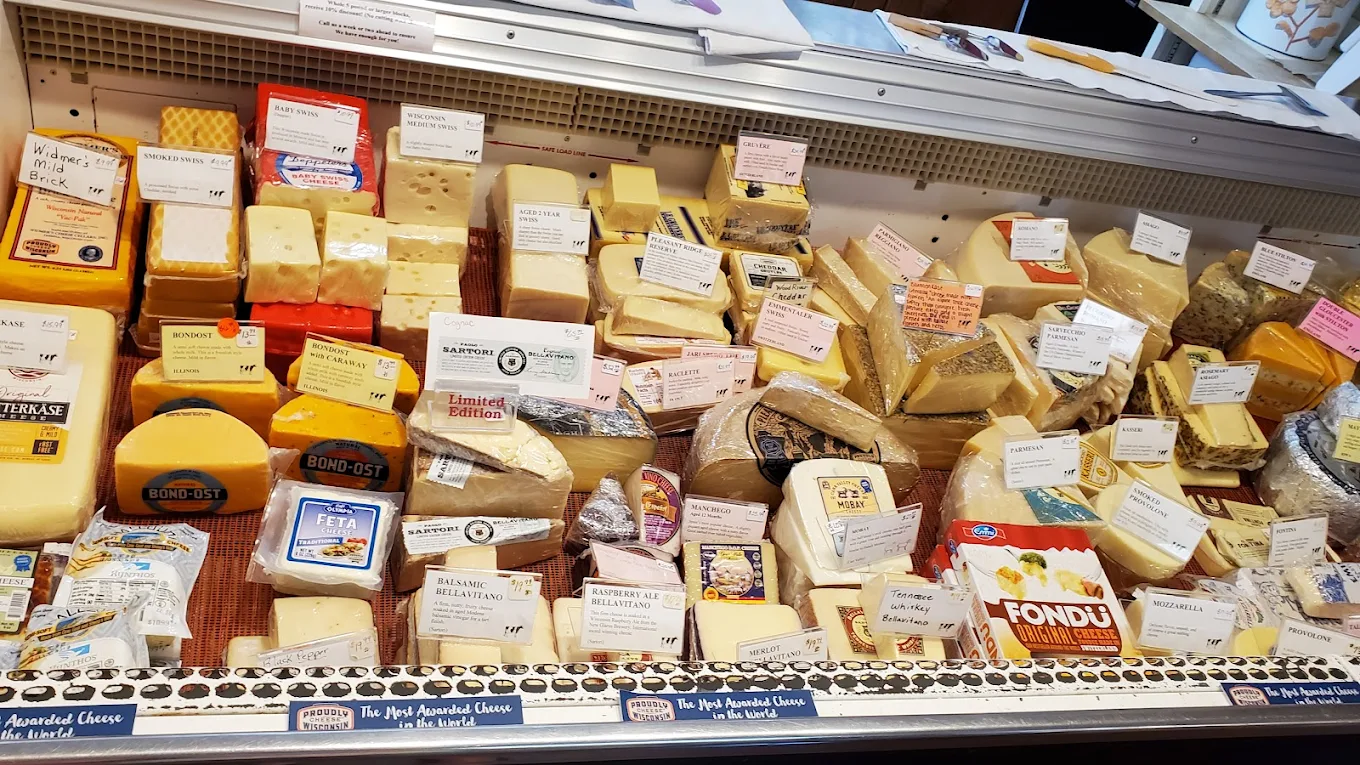 The Cheese Board provides top-quality Wisconsin and imported cheeses, including Cheddars, Colby, Muenster, Swiss, Havarti, and a wide selection of gift boxes.
