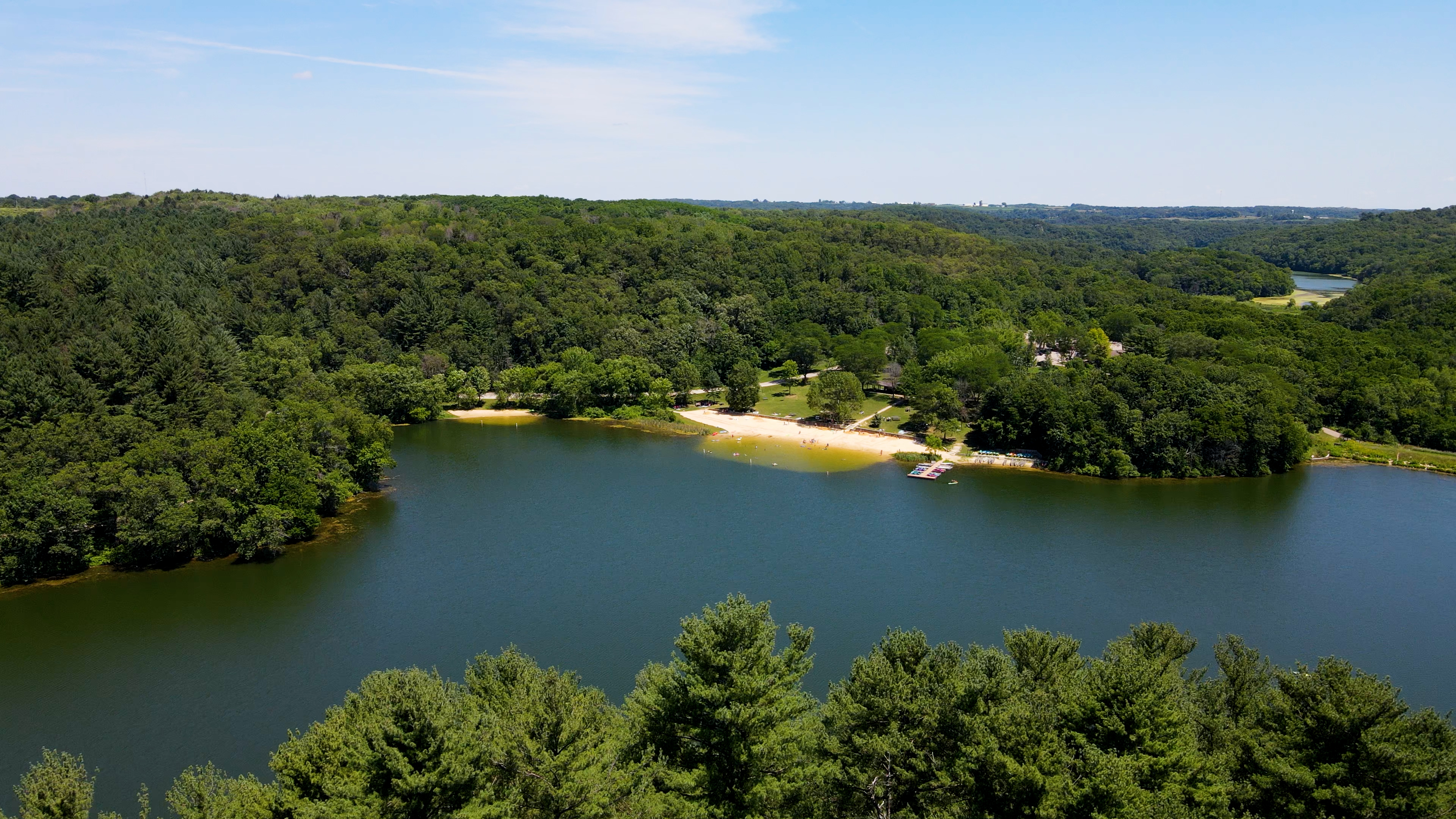 Governor Dodge State Park, one of the largest parks in Wisconsin, spans over 5,000 acres in the scenic Driftless Area. The park offers a diverse range of outdoor activities, including camping, hiking, biking, fishing, swimming, and horseback riding. With two lakes, a waterfall, and nearly 40 miles of trails—eight of which are challenging off-road bike trails—there is something for everyone. Visitors can enjoy stunning views from the overlook near Stephen's Falls or relax at one of the park's swimming beaches. Whether you're seeking adventure or relaxation, Governor Dodge State Park provides year-round opportunities for outdoor fun.