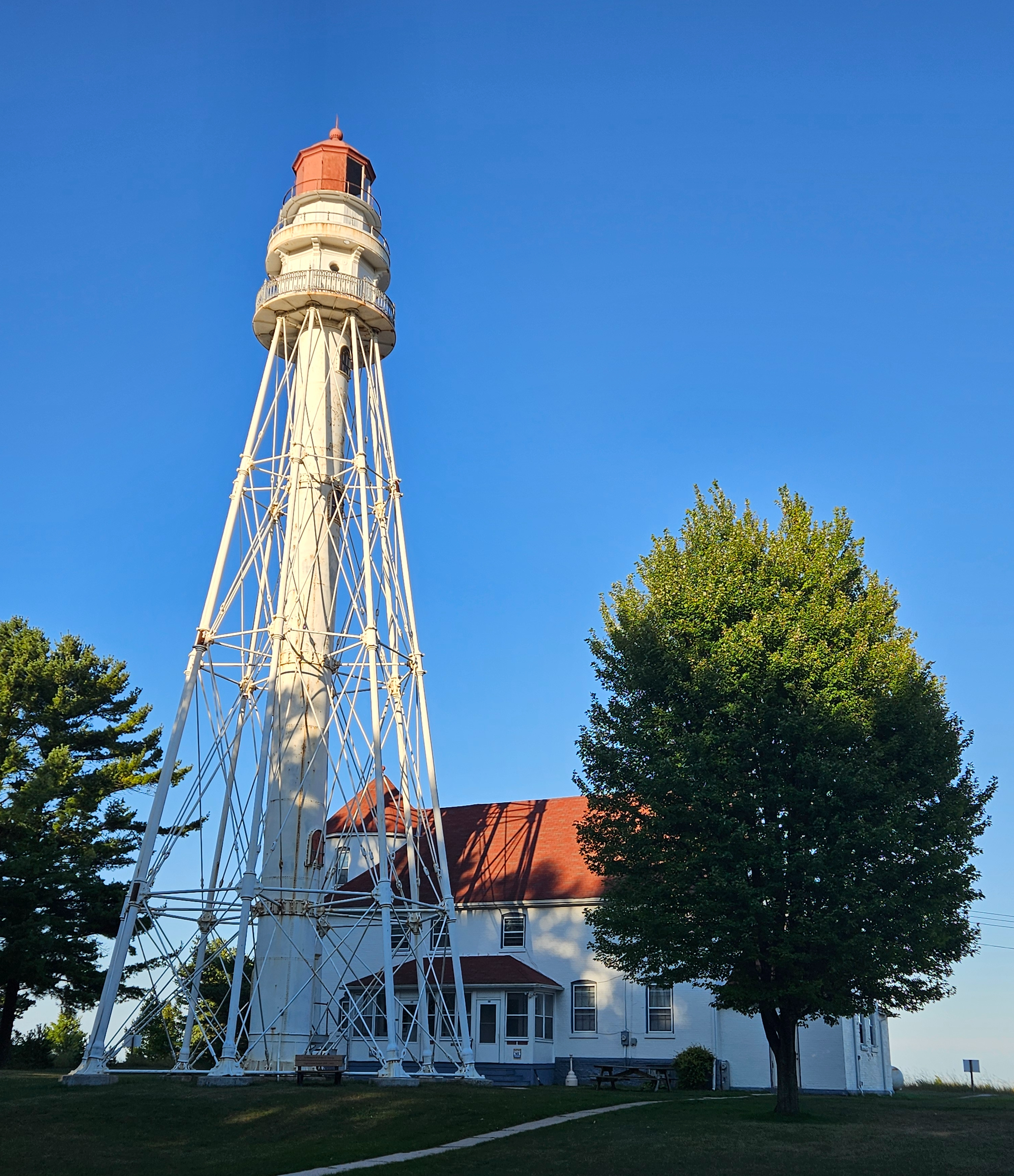 Point Beach State Forest encompasses 3,000 acres of land and boasts 6 miles of sandy beach along the shores of Lake Michigan. The forest offers family campsites, two large group cabins, and an outdoor group camp. A notable feature of the area is the Rawley Point Lighthouse, which has been operated and maintained by the U.S. Coast Guard since 1853.