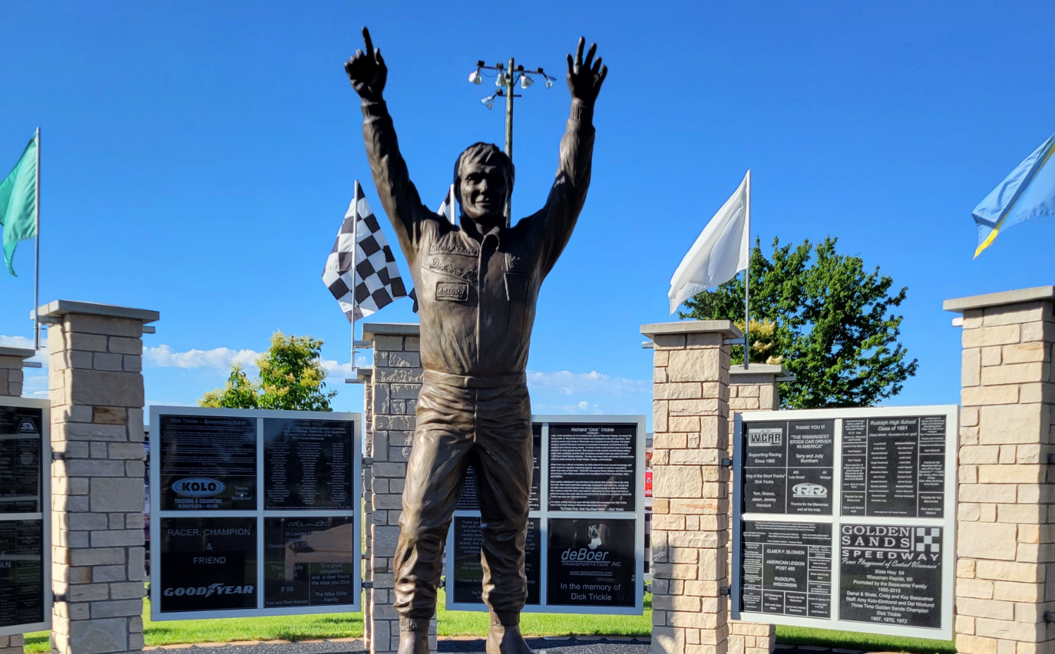 Visit a memorial dedicated to a local racing legend located in the town that he grew up in. The statue depicts Dick forever saluting the crowd. With more than 1,000 victories in about 30 years, he was one of the greatest short track racers ever. Going on to race in over 450 NASCAR races and becoming the 1989 NASCAR Winston Cup Series Rookie of the Year.