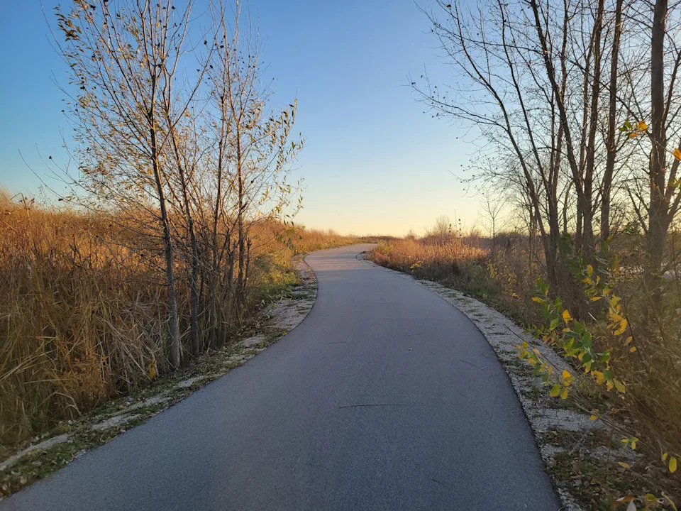 From here, the trail unfurls southward under open skies, paralleling US 151 with a wide grassy median between the trail and roadway. The eastern end of the trail overlaps the Peebles Trail; the two separate in Taycheedah with the Peebles Trail heading west and the Prairie Trail continuing south.